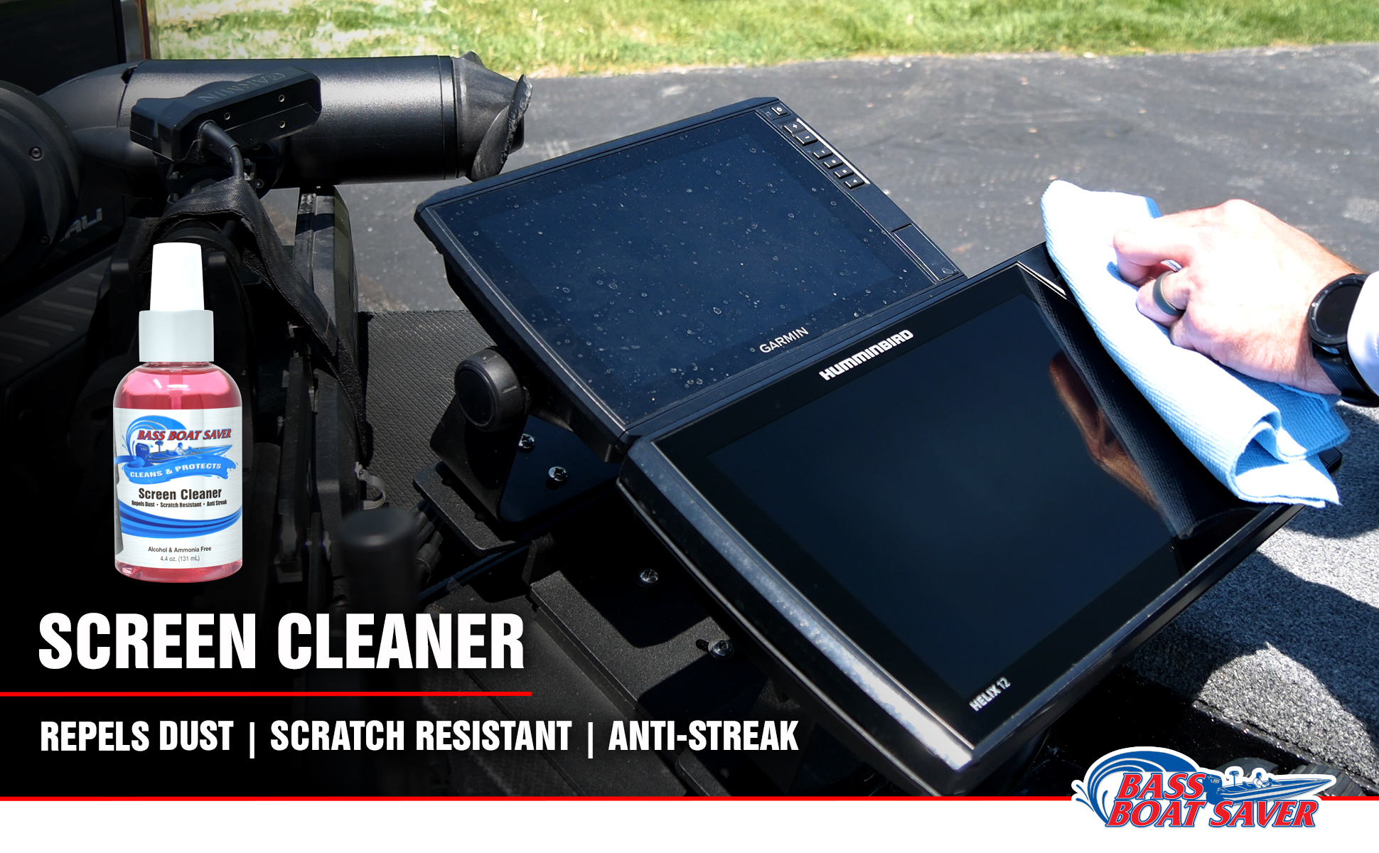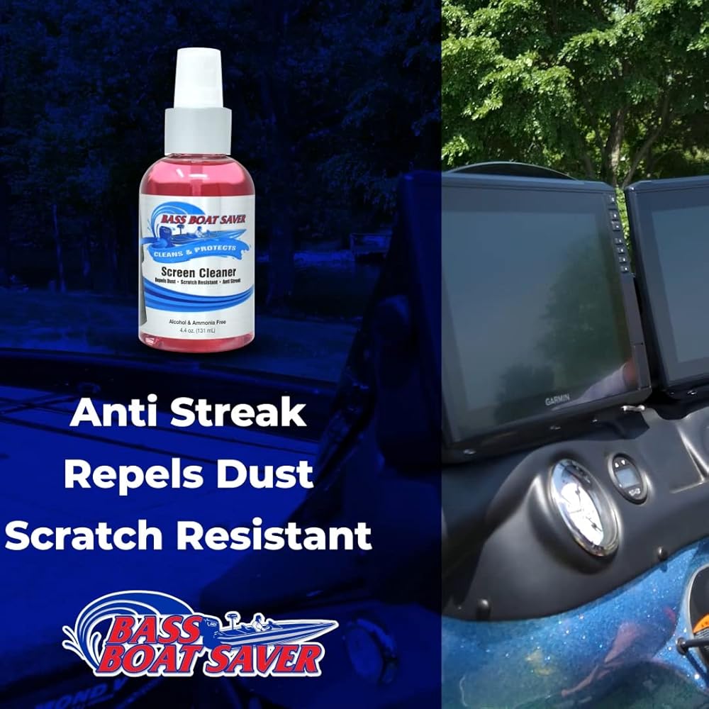 منظف ​​شاشة Bass Boat Saver - مزيل سريع للمياه الصلبة - خالي من الكحول والأمونيا - آمن على الهاتف المحمول Garmin Lowrance Humminbird - زجاجة 4.4 أونصة