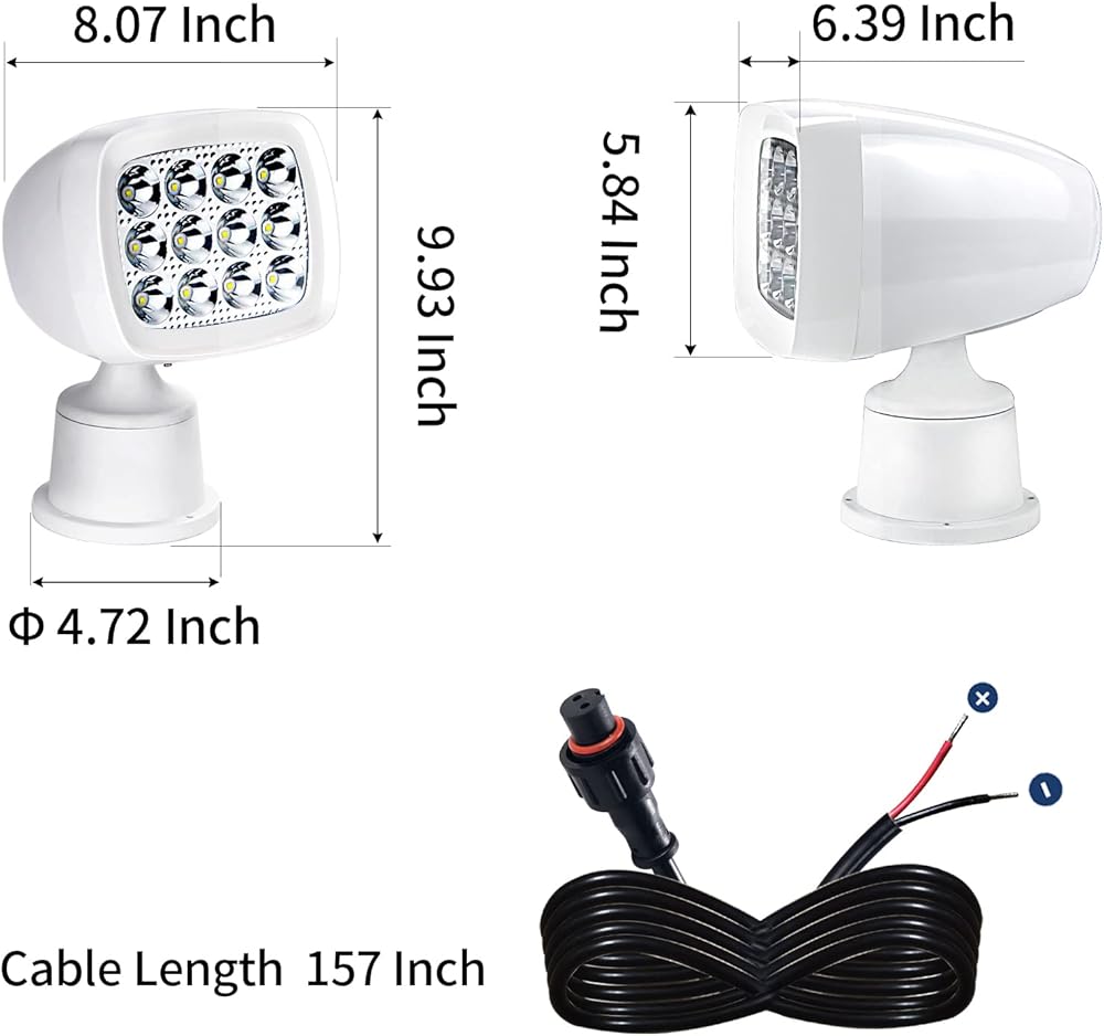 - 【فائقة السطوع 】 تم تجهيز الأضواء البحرية للقوارب بـ 12 قطعة من مصابيح LED بقدرة 60 وات مع مسافة إضاءة تصل إلى 200 قدم للبحث عن الهدف.