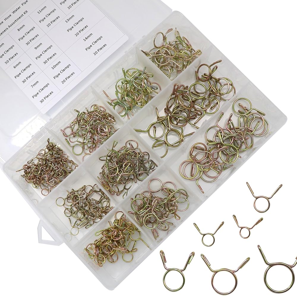 270Pcs Fuel Line Hose Water Pipe Air Tubing Spring Clips Clamps Fasteners Assortment Kit(5/6/7/8/9/10/11/12/13/14mm)