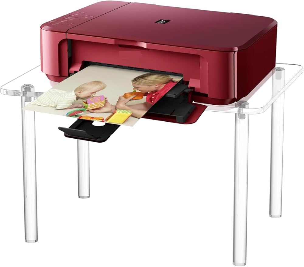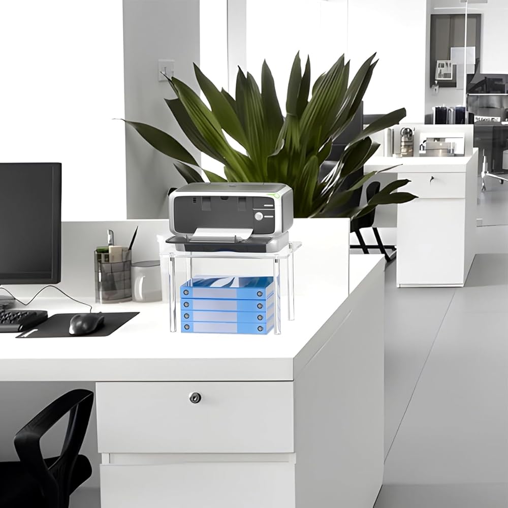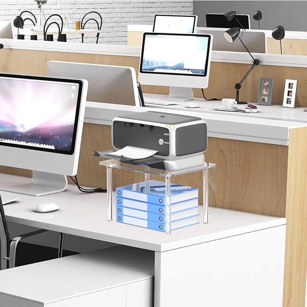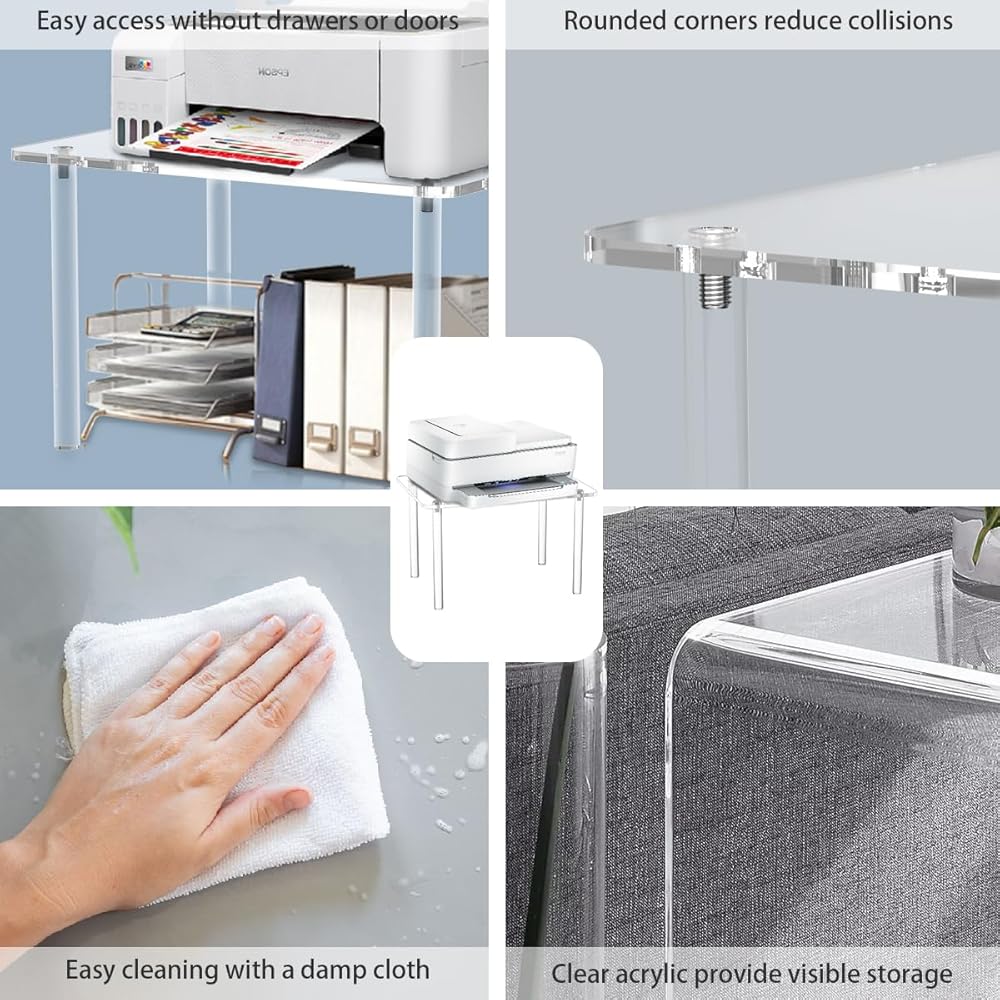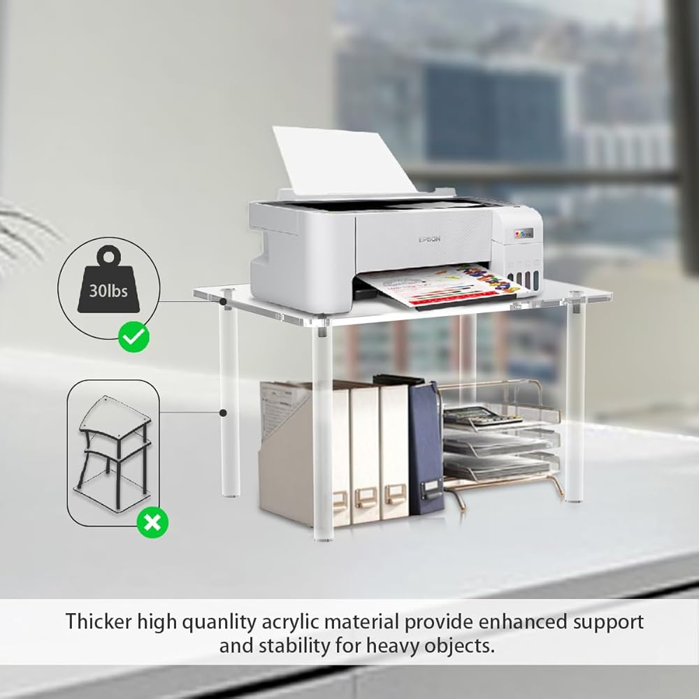 حامل طابعة أكريليك - مكتب أكريليك مقاس 9 بوصات ارتفاع للمكتب والمنزل، رف تخزين طاولة طابعة سطح مكتب صغير للمكتب والمطبخ 15.55 بوصة طول × 11.61 بوصة عرض × 9.25 بوصة ارتفاع.