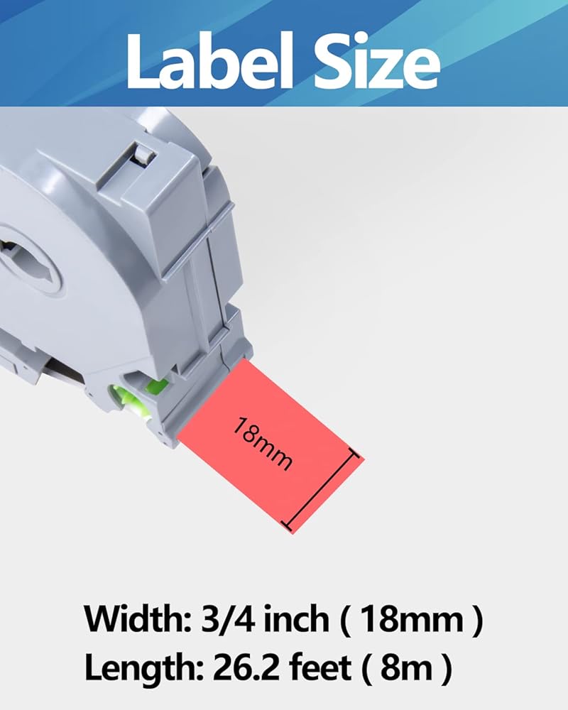 • الحجم والكمية: تأتي أشرطة الملصقات TZe-241 في 4 عبوات بعرض 18 ملم (0.7 بوصة) وطول 8 أمتار (26.2 قدمًا)، مما يجعلها ذات حجم متعدد الاستخدامات يمكن استخدامه لتسمية مجموعة متنوعة من العناصر