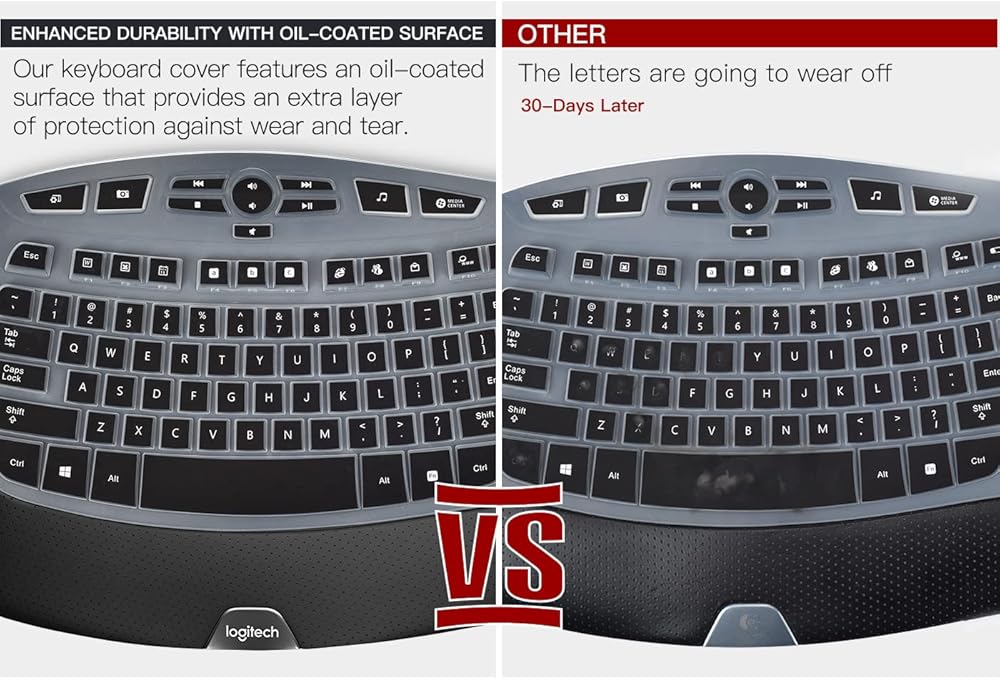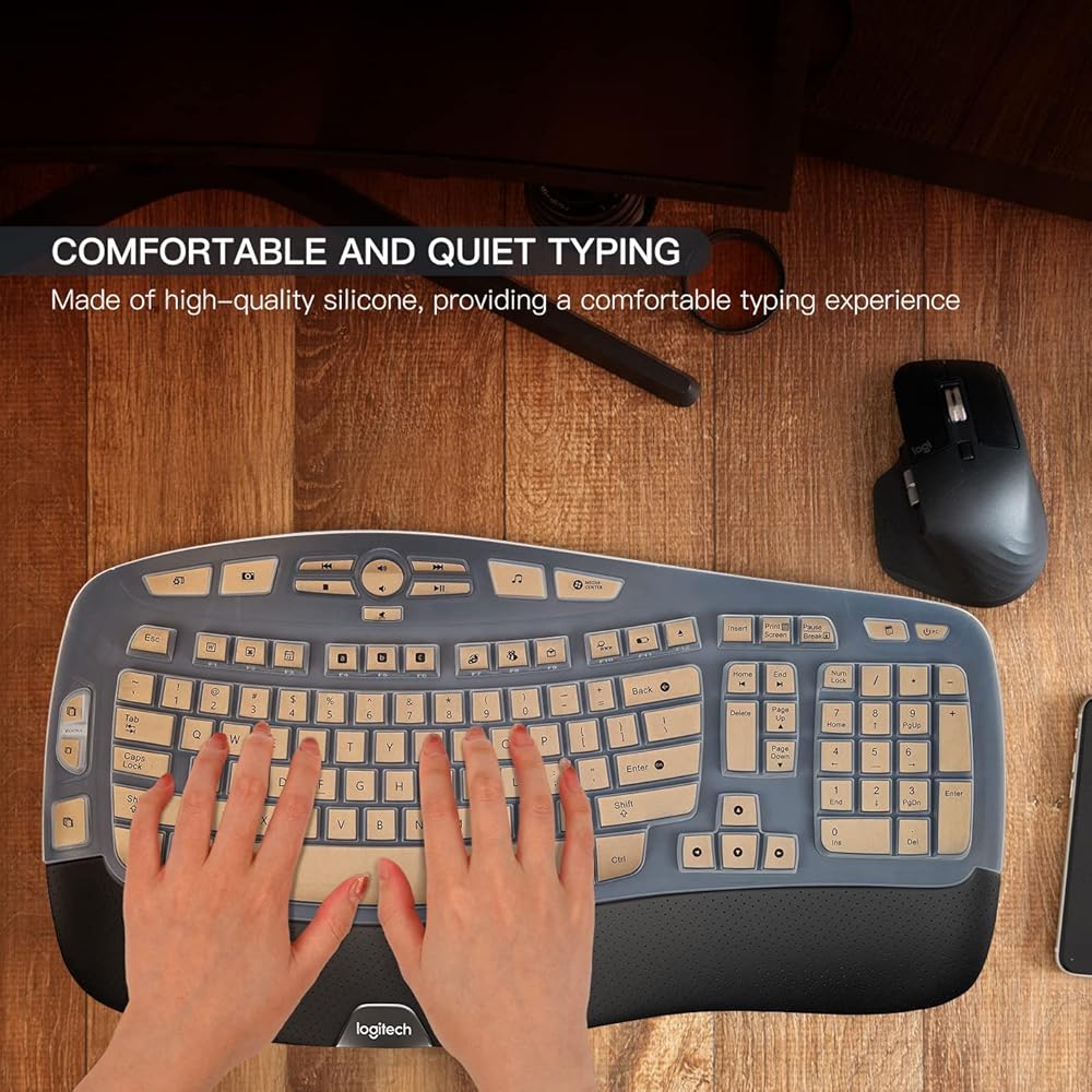 مناسب تمامًا للوحات مفاتيح Logitech - مصمم خصيصًا للوحة المفاتيح Logitech اللاسلكية المريحة (الموديل: Wave Keys MK670)، هذا الغطاء السيليكون يناسب لوحة مفاتيح Logitech الخاصة بك تمامًا، مما يوفر حماية كاملة ضد الغبار والأوساخ والسوائل المنسكبة والأضرار المحتملة الأخرى.