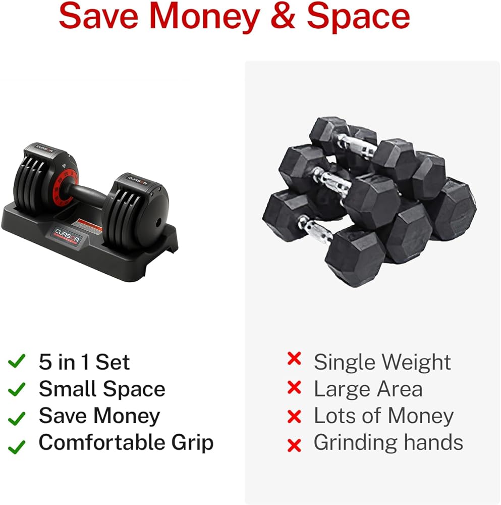 𝗦𝗔𝗩𝗘 𝗠𝗢𝗡𝗘𝗬 & 𝗦𝗣𝗔𝗖𝗘 - وداعًا للفوضى الناتجة عن 5 مجموعات من الدمبل في مساحة التمرين الخاصة بك ووفر مبلغًا كبيرًا من المال.