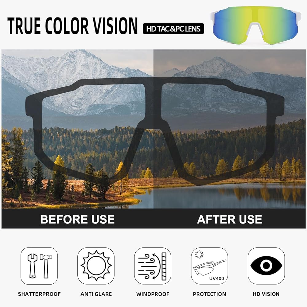 تصميم متعدد الوظائف: تتميز نظارات ركوب الدراجات الرياضية هذه بتصميم متعدد الوظائف مناسب لمختلف المشاهد الرياضية، بما في ذلك ركوب الدراجات والتزلج والتزلج والجري والمزيد.