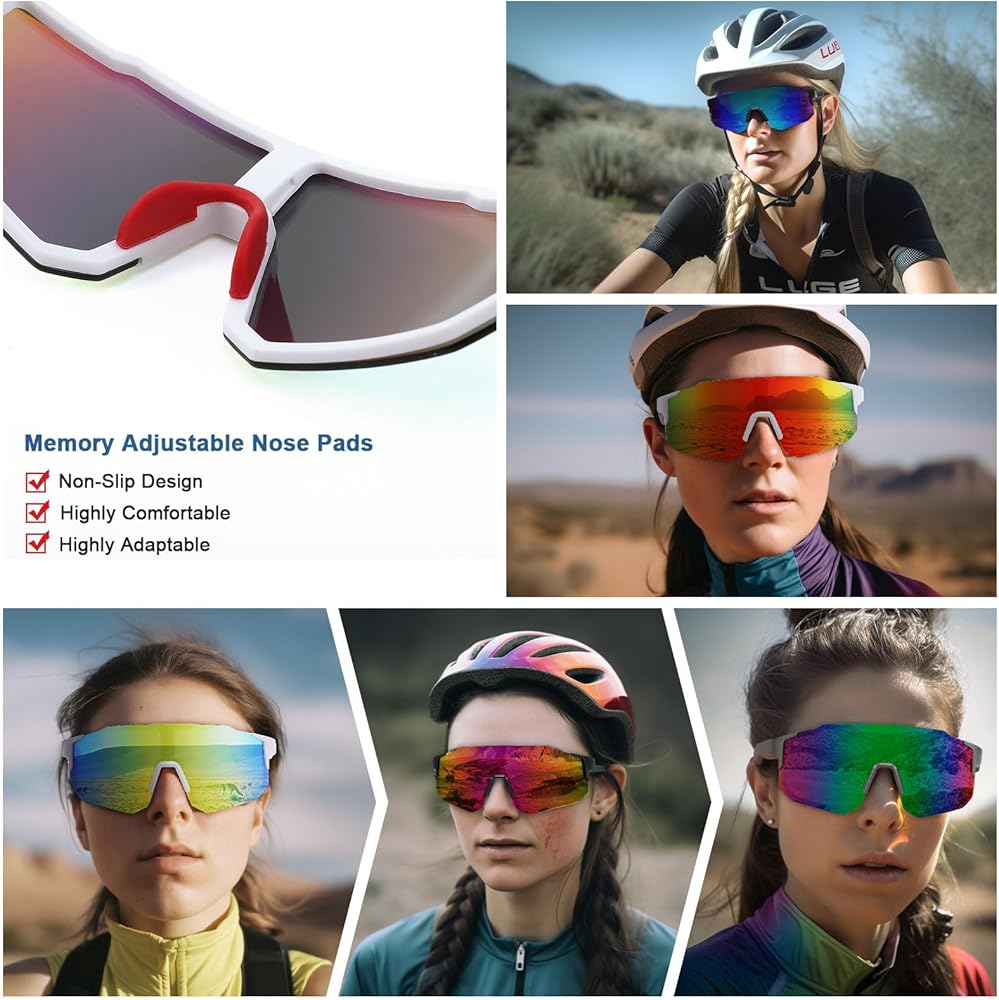 عدسات مقاومة للأشعة فوق البنفسجية: تستخدم نظارات ركوب الدراجات الرياضية هذه عدسات مقاومة للأشعة فوق البنفسجية تمنع بشكل فعال الأشعة فوق البنفسجية الضارة وتحمي عينيك من التلف.