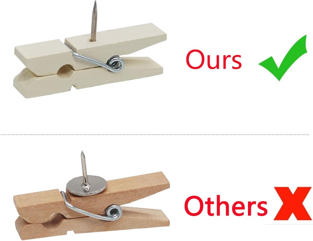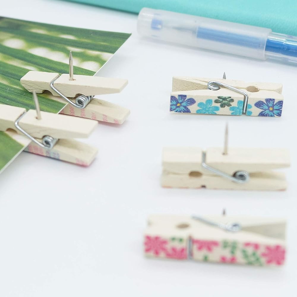 Our colorful wooden push pin clips, provide a no hole solution for your papers and photos to pin. These push pins are great to holding up your document, artworks, school projects, photos, notes, papers, ticket stubs, home decoration and other memories as well.