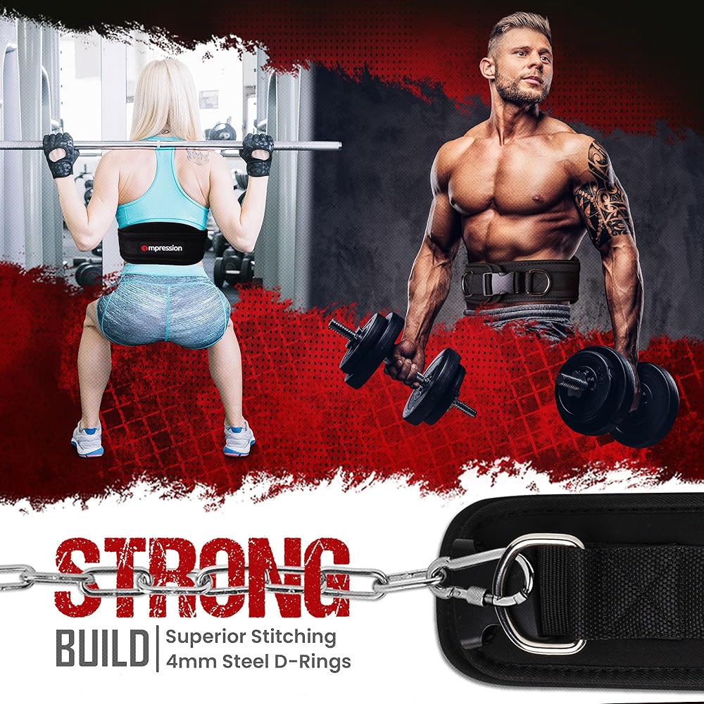استخدامات متعددة: سواء كان حزامًا للانخفاضات الموزونة، أو قرفصاء حزام الورك، أو الذقن، أو الرئتين، فإن حزام الرفع هذا للرجال والنساء يوفر الدعم والمقاومة التي تشتد الحاجة إليها لتجربة تمرين أفضل.