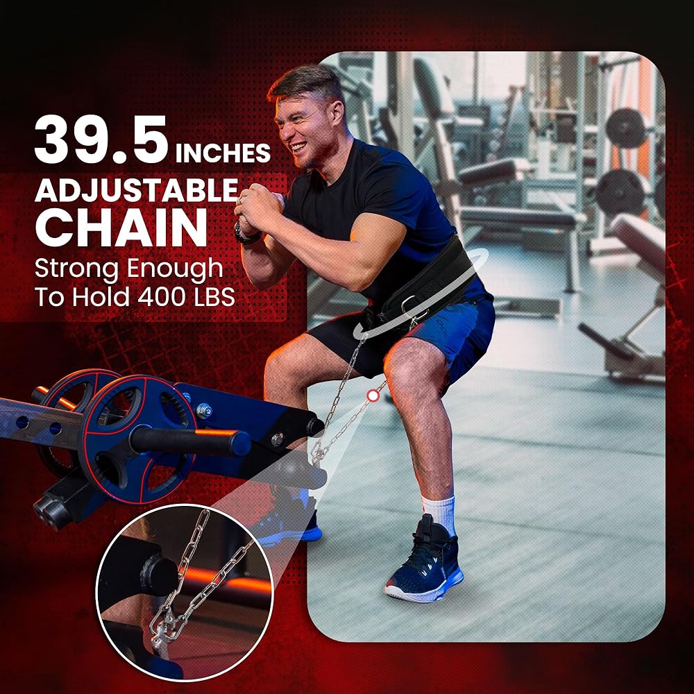 حزام وزن متسلسل للانخفاضات: مزود بسلسلة فولاذية طويلة 39 بوصة، هذا الحزام لرفع الأثقال يساعد في موازنة الوزن ويسمح لك بتعديل المقاومة وفقًا لتفضيلاتك وأهداف اللياقة البدنية