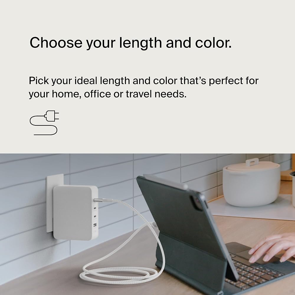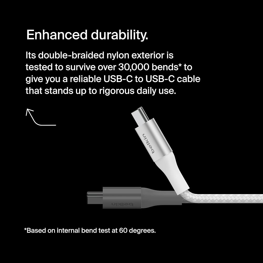 Connect your USB-C device to safe, fast power with our durable BoostCharge USB-C to USB-C Power Cable. The first of its kind in our catalog, it's USB-IF certified, supporting up to 240W charging power and 480 Mbps transfer speeds for a MacBook Pro, Chromebook, PC laptop, iPad, and various other USB-C compatible devices. This charging cable features a double-braided exterior that's tested to survive over 30,000 bends, giving you a cable that's built to last. Get it in 2M/6.6ft or 1M/3.3ft lengths to easily facilitate using your device while it charges – without the hassle.