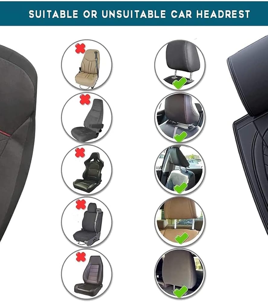【Applications】Universal size 11'' x 11'' Fits 99% cars in the market, our headrest covers for cars protector suitable fitr most cars trucks SUVs vans etc.Class up your vehicle's interior with our car headrest covers, popular with tour guides, taxis, Uber & Lyft, drivers! Perfect and festive gifts for your friends or loved ones.Note: Does not apply to car seats without headrest bars.