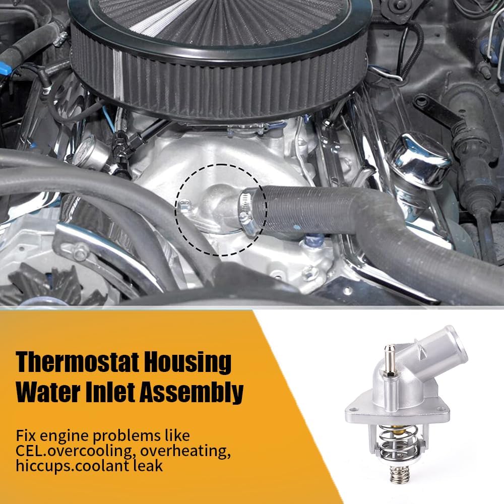 12674639 مجموعة مبيت منظم حرارة مبرد المحرك - مجموعة مخرج مياه السيارة من سبائك الألومنيوم باللون الفضي متوافقة مع كاديلاك إسكاليد، شيفروليه سيلفرادو، سوبربان، تاهو، وجي إم سي سييرا 1500