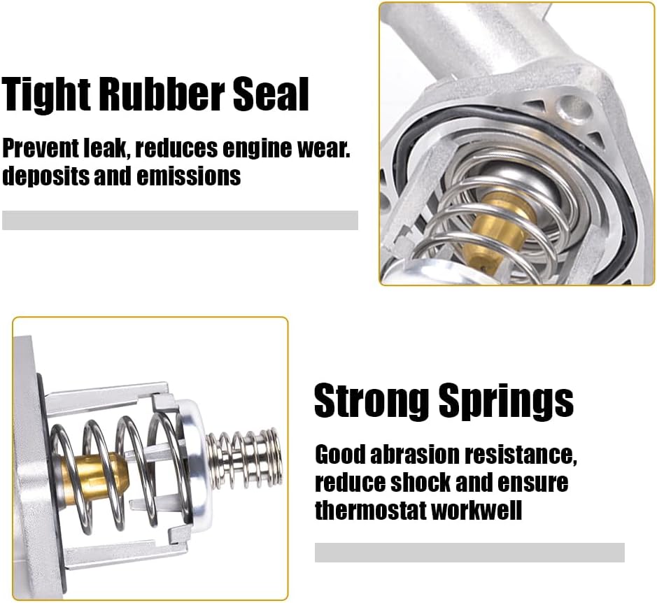 ★جودة ممتازة: مصنوعة من مواد ألومنيوم متينة ومقاومة للتآكل، تضمن مجموعة مبيت الترموستات هذه الموثوقية والأداء على المدى الطويل. يضمن تصميمه القوي قدرته على تحمل قسوة تقلبات درجة حرارة المحرك، مما يوفر راحة البال ونظام تبريد موثوق به لسيارتك.