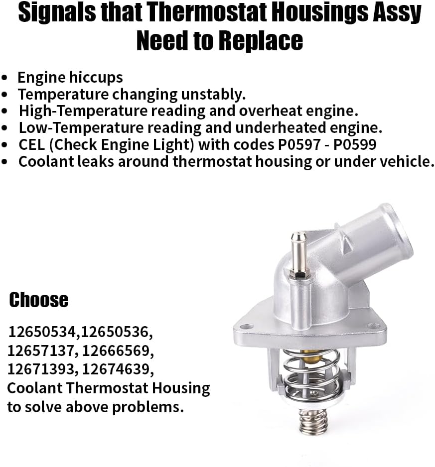 ★أداء موثوق: مع رقم OEM 12674639، تضمن مجموعة مبيت منظم الحرارة لمبرد المحرك بديلاً جيدًا لنظام التبريد في سيارتك. فهو ينظم درجة حرارة المحرك بشكل فعال، ويمنع ارتفاع درجة الحرارة ويحافظ على الأداء الأمثل.