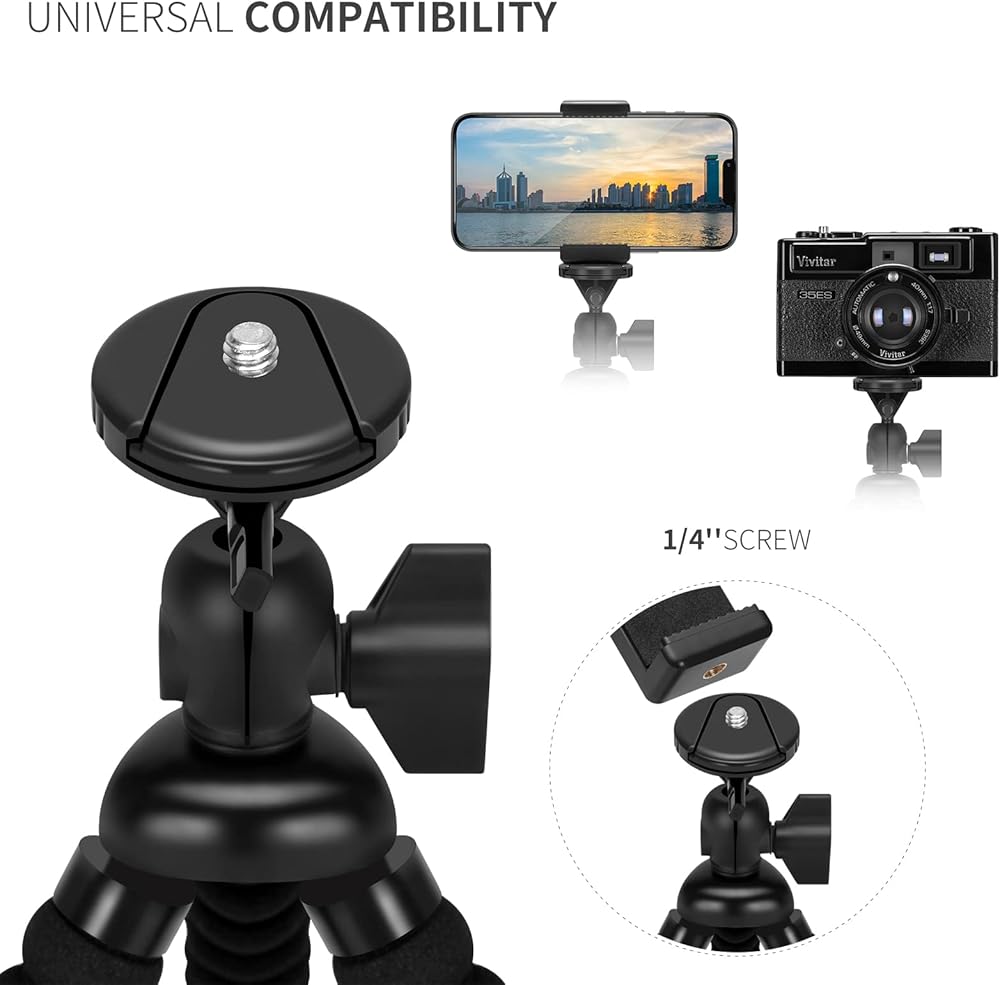 التوافق: المشبك العلوي مناسب لجميع الهواتف المحمولة بعرض 3.54 بوصة بحد أقصى، بما في ذلك iphone14، 14 pro، 14 pro max، iphone X، iphone SE، iphone 11، iphone8، 8 plus، iPod، GPS، PDA، HTC ونوكيا وLG بلاك بيري وأي هاتف ذكي آخر. واجهة الكاميرا هي المسمار العالمي 1/4-20 الذي يناسب معظم الكاميرات.