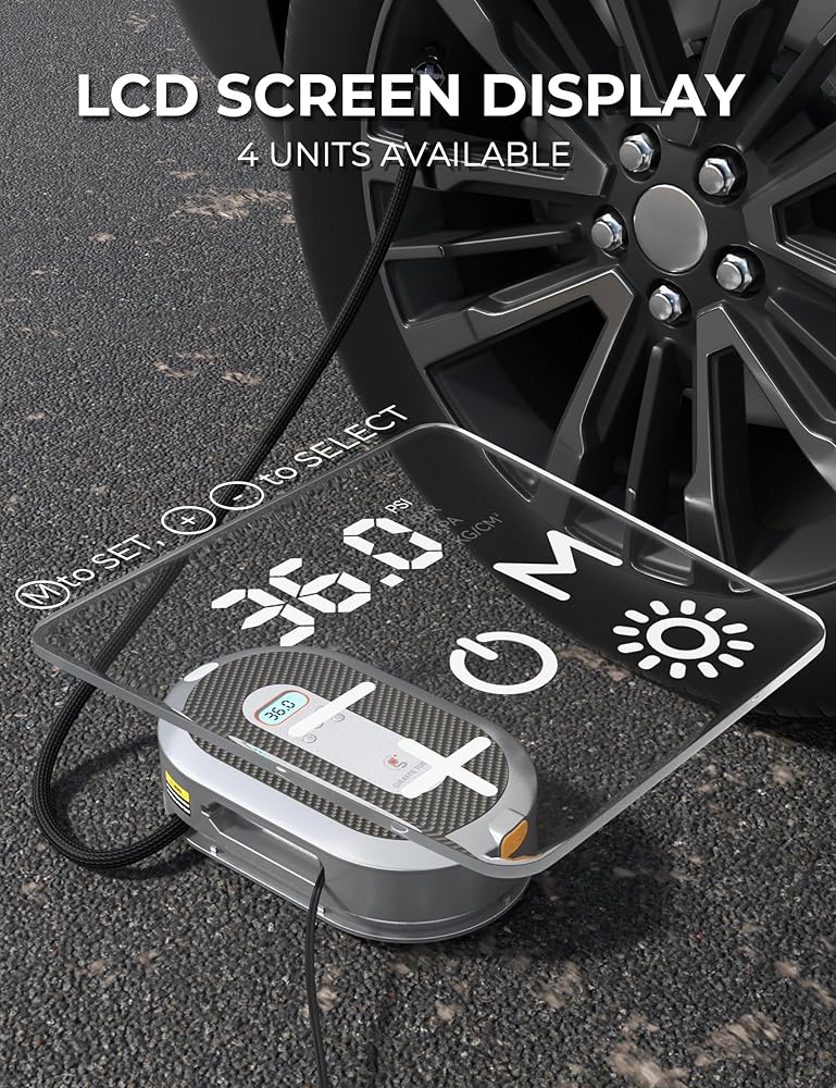 🛻سلك طاقة حصري قابل للسحب وشاشة LCD - قل وداعًا للأسلاك المتشابكة والتخزين الفوضوي مع نظام السلك القابل للسحب تلقائيًا في منفاخ الإطارات. اضغط على زر تانجيلو، وسوف ينسحب سلك الطاقة تلقائيًا، ويبقيه مرتبًا ويوفر لك الوقت.