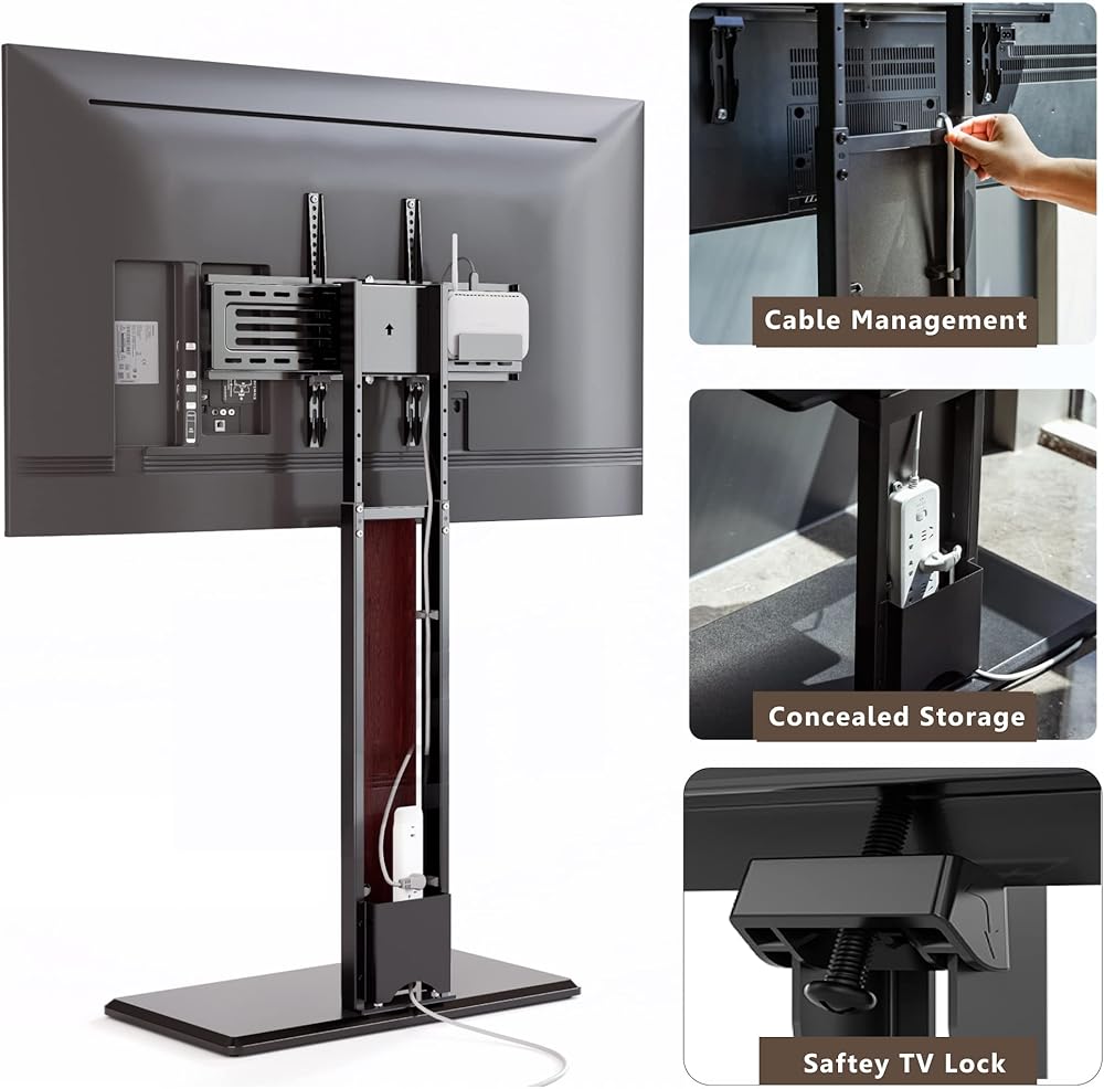 【دوران 40 درجة للعرض الاختياري】تم تصميم حامل التلفزيون الطويل الدوار من فيتويز بوظيفة تدور بشكل مريح 20 درجة يمينًا أو يسارًا، وتغيير اتجاه الشاشة بسهولة، مما يجعل المشاهدة في أي مكان أمرًا سهلاً في الغرفة دون تحريك التلفزيون الثقيل. نقدم لك أفضل تجربة مشاهدة.