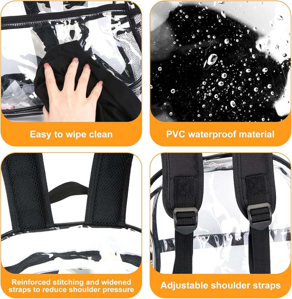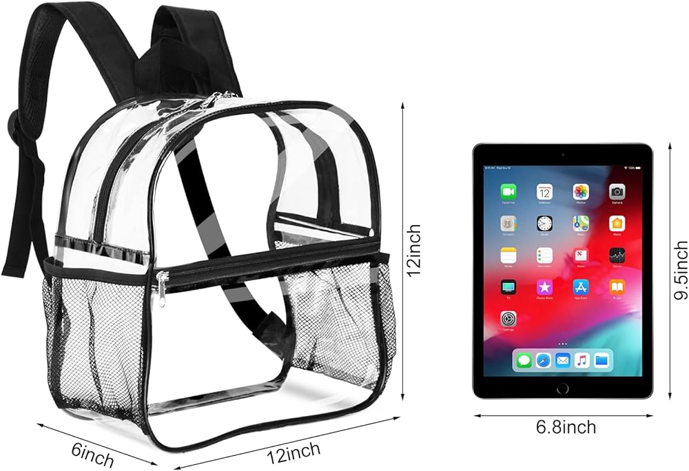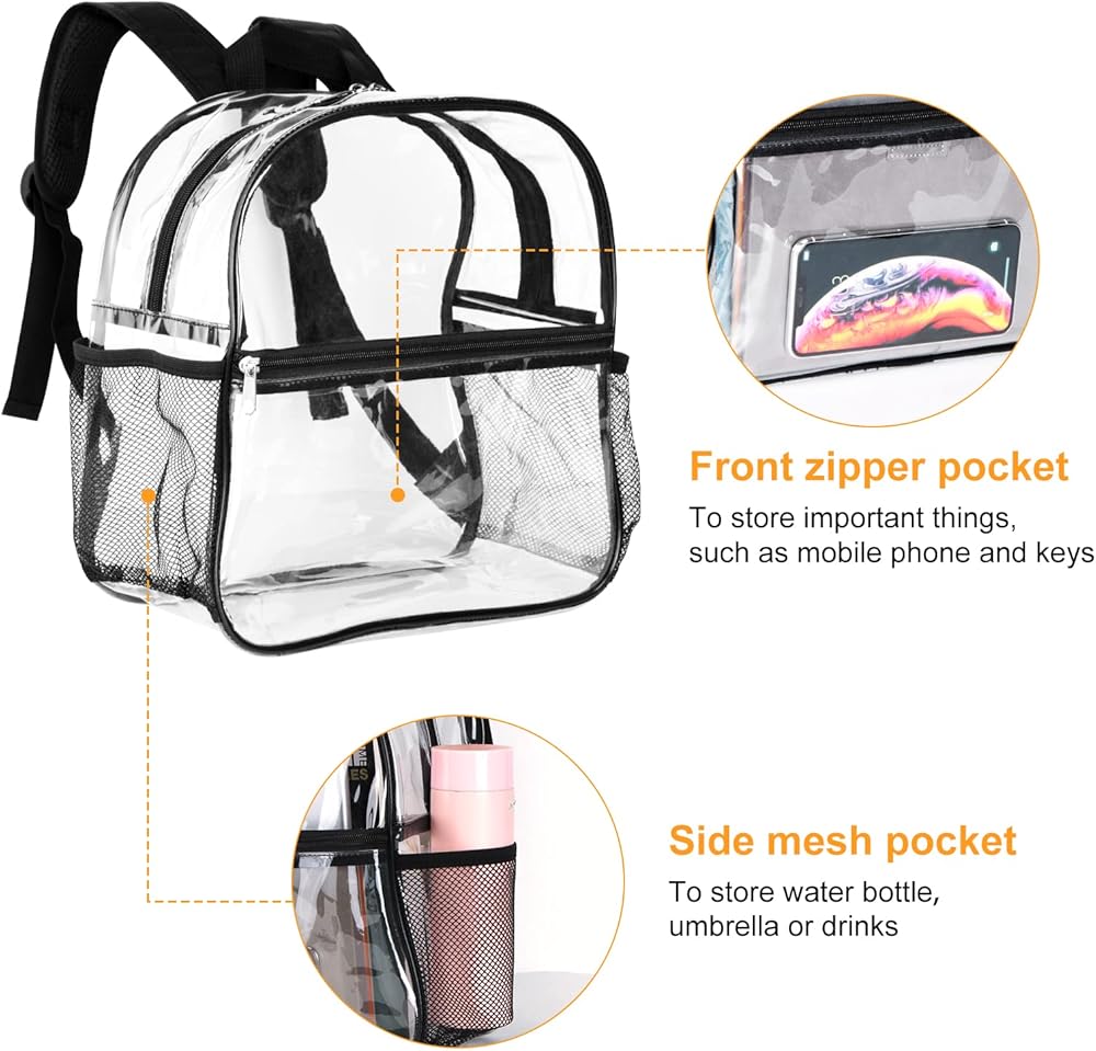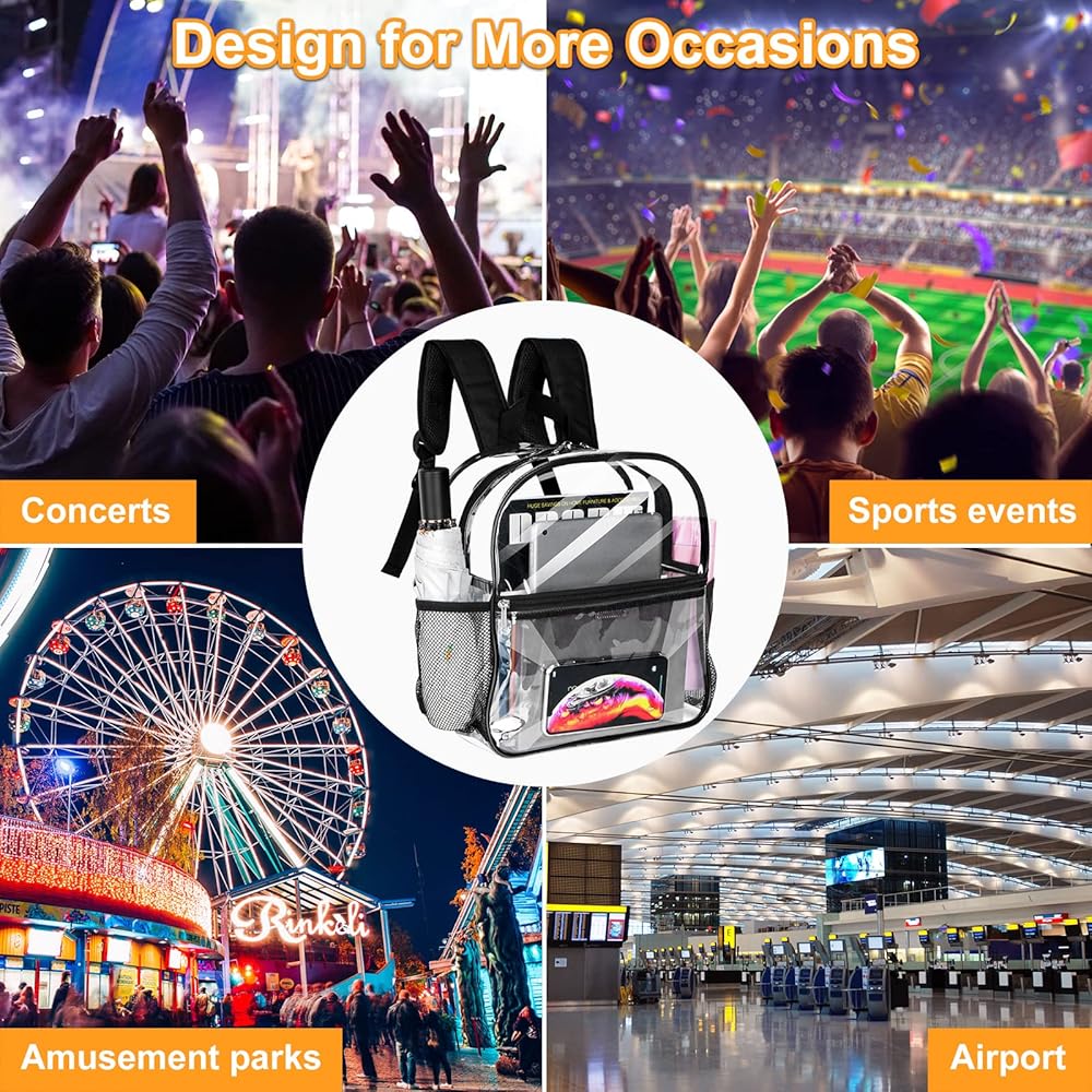 【معتمدة من استاد حقيبة الظهر الشفافة 】حقيبة ظهر صغيرة شفافة بحجم 12 × 12 × 6 بوصة وشفافة تمامًا في جميع الأنحاء، ومعتمدة من الملعب. قم بالمرور عبر نقاط التفتيش الأمنية بسرعة وسهولة دون إضاعة الوقت عند البوابات. إنه مثالي لمباريات كرة القدم، والأحداث الرياضية في الملاعب، والحفلات الموسيقية، وأمن السفر، والحفلات والمهرجانات وما إلى ذلك.