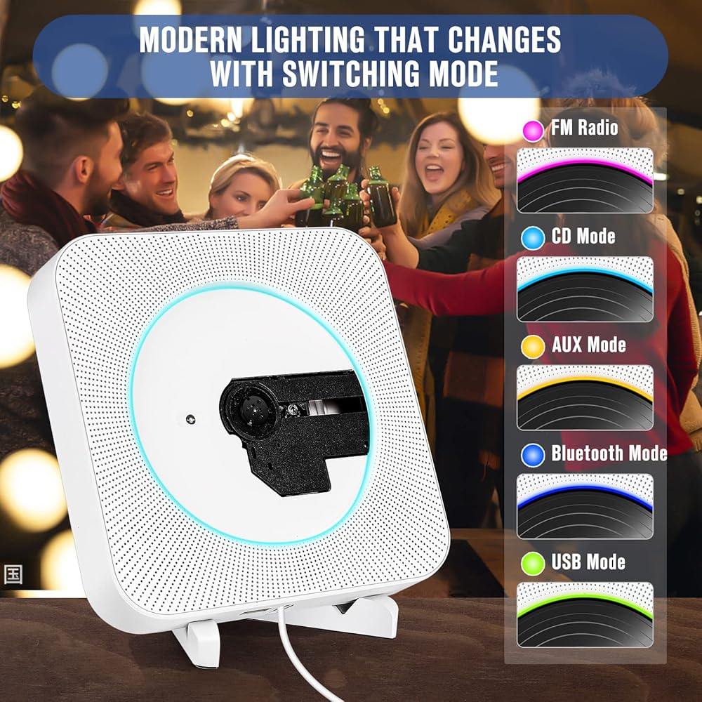【تصميم خاص】جسم مربع أبيض بسيط للغاية، بدون تصميم غطاء، يمكن اللعب به حسب الرغبة. تصميم مبتكر يجمع بين التثبيت على الحائط وتصميم مفتاح الوجه، ما عليك سوى سحب سلك الطاقة لأسفل لبدء اللعب واستخدام جهاز التحكم عن بعد للتحكم في مفتاح التشغيل/الإيقاف! يعرض مشغل الأقراص المضغوطة SHIWAKOTO ألوانًا فاتحة مختلفة في حالات تشغيل مختلفة، وهو أمر ملفت للنظر للغاية.