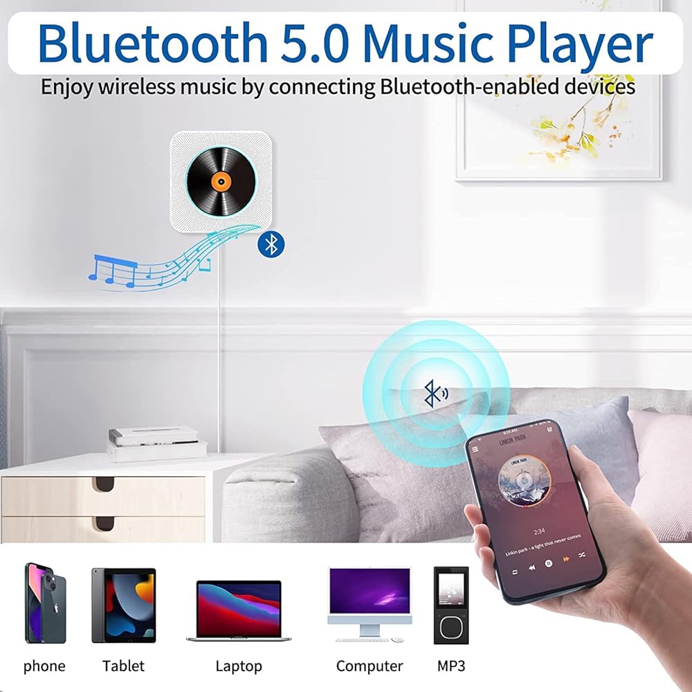 【مشغل موسيقى بلوتوث هاي فاي 】جهاز استقبال بلوتوث 5.0 مدمج، يتميز بنطاق إشارة أوسع، واتصال أسرع وسرعة نقل. يمكنه الاتصال بالأجهزة الذكية بهذه الوظائف، مثل الهواتف المحمولة أو الأجهزة اللوحية أو أجهزة الكمبيوتر المحمولة أو أجهزة البلوتوث الأخرى. قم بتشغيل ما تريد في أي وقت وفي أي مكان، واستمتع بالموسيقى الواضحة التي تملأ غرفتك.