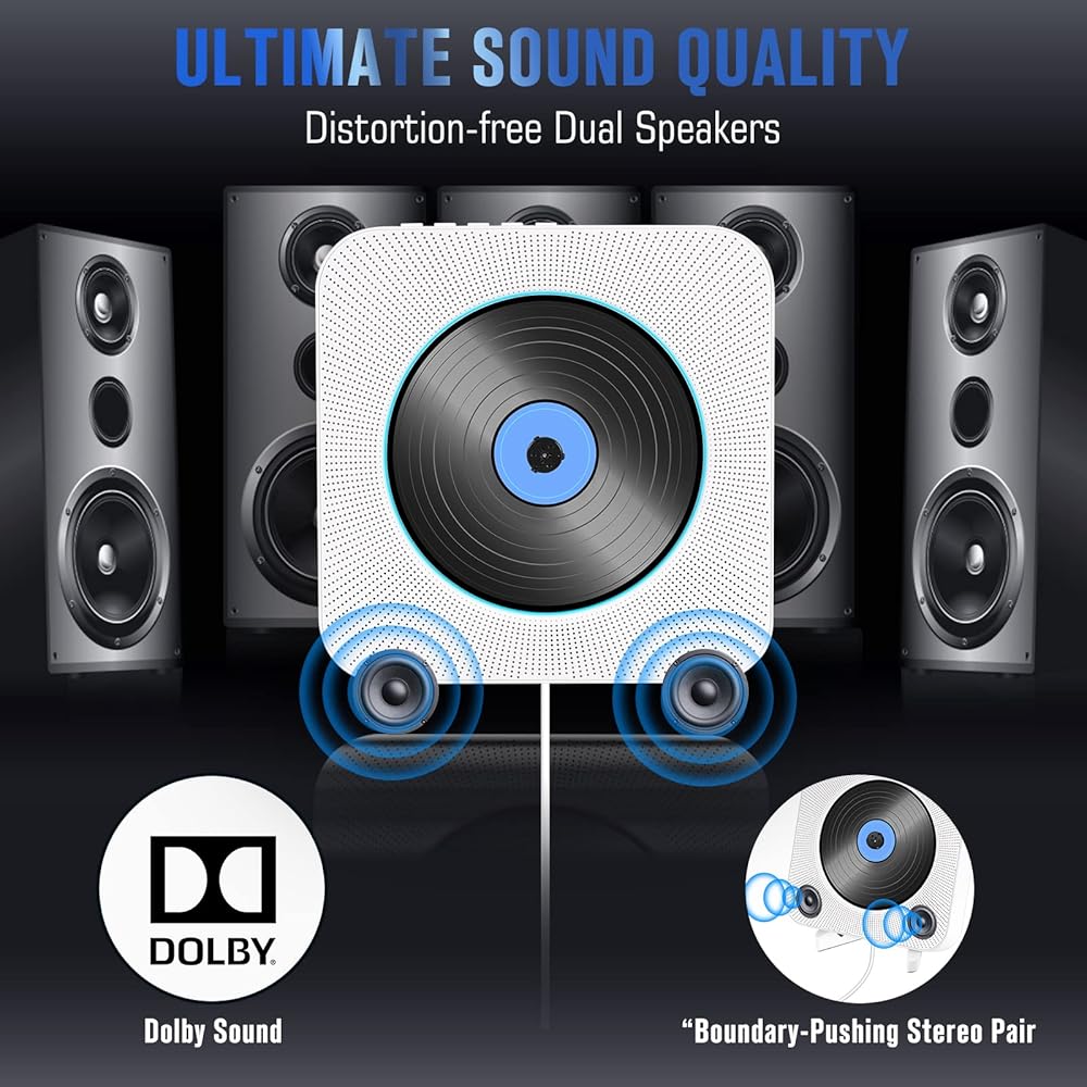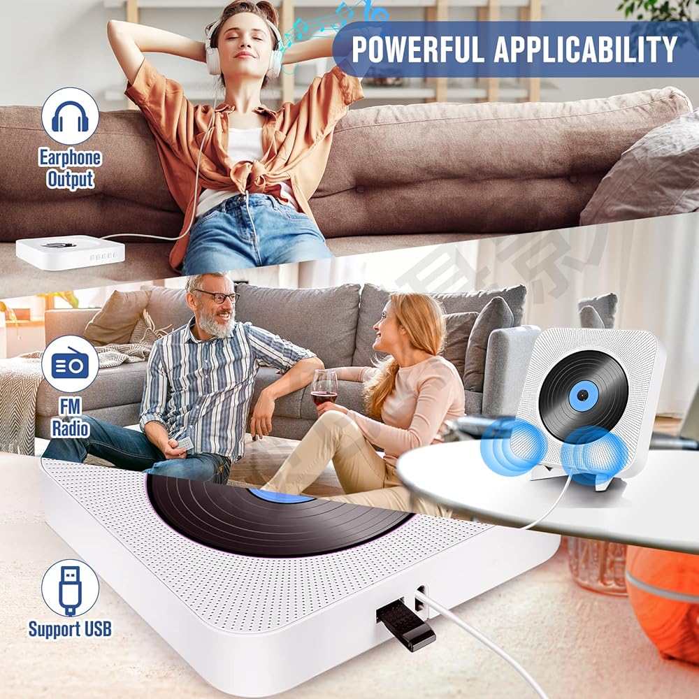 【وظيفة 5 في 1】يمكن لمشغل الموسيقى المنزلي هذا أن يعمل على النحو التالي: 1. مشغل أقراص مضغوطة محمول؛ 2. راديو FM. 3. سمّاعات بلوتوث هاي فاي. 4. هوم ميني بوم بوكس؛ 5. مشغل محرك فلاش USB. 6. وظيفة التنبيه. قم بتشغيل جميع أنواع الأقراص المضغوطة بسلاسة، ومتوافقة على نطاق واسع مع تنسيقات CD وCD-R وCD-RW وMP3 وWMA وWAV، ومناسبة للمناسبات المختلفة، مثل الاجتماعات والحفلات والعمل واليوجا والتعليم المنزلي.