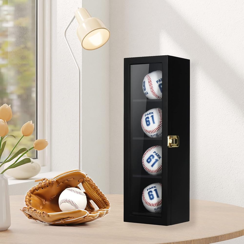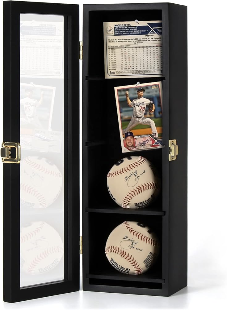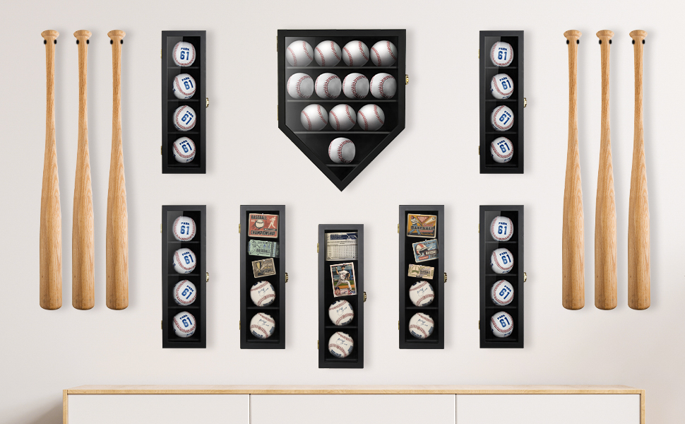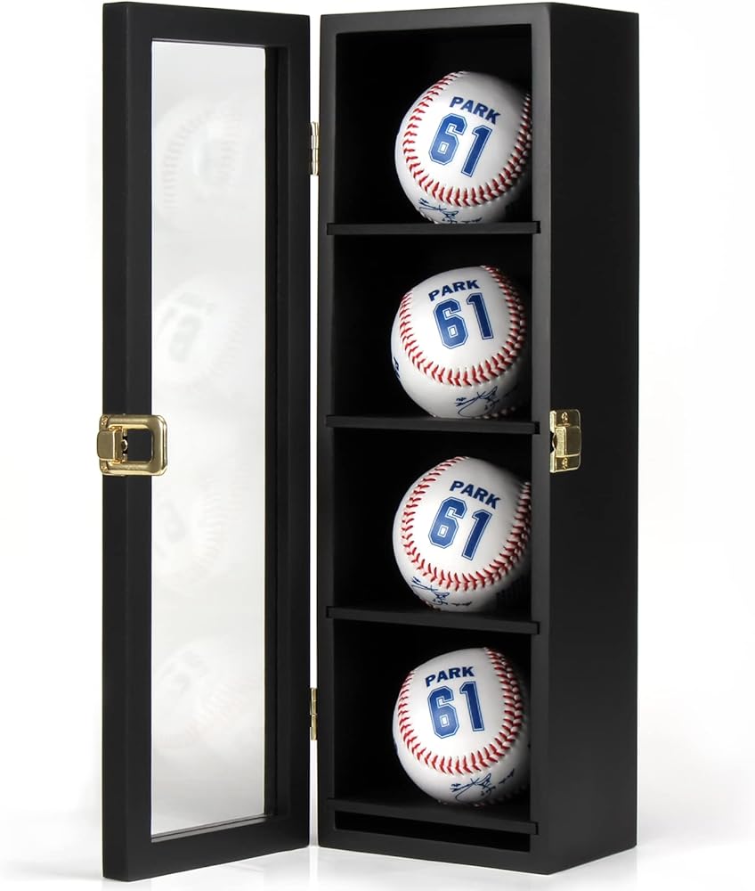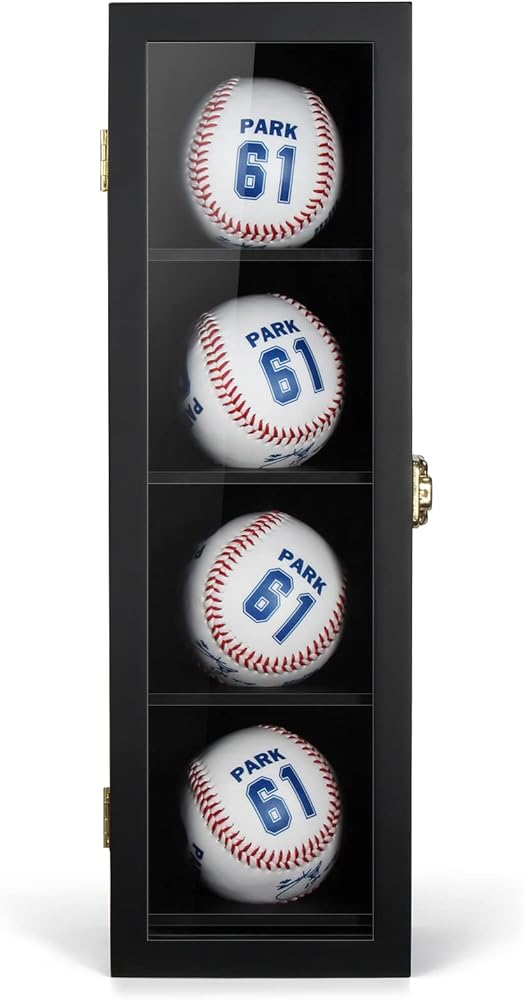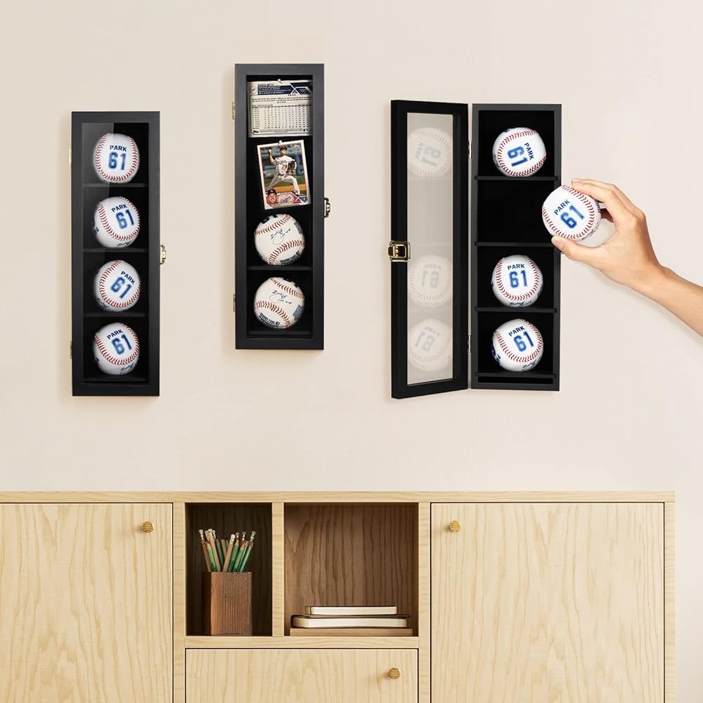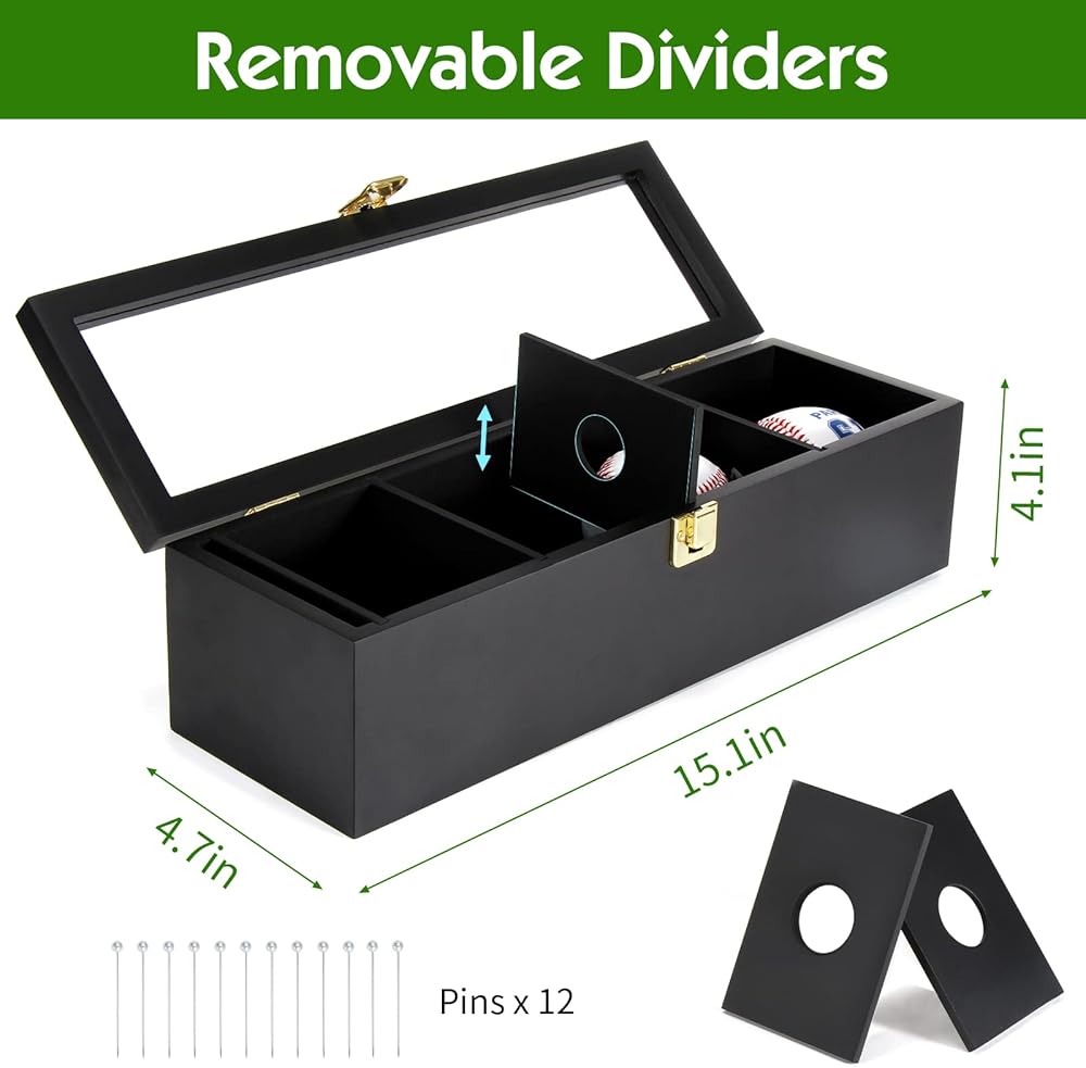 حرفية فائقة - فتحات بادئة على كل رف لتثبيت 4 كرات بيسبول في مكانها بشكل آمن. يمكن نقل كل قسم ويمكن وضع البيسبول وفقًا لاحتياجاتك. خلفية داخلية من القماش الأسود المخملي مع دبوس برأس لؤلؤي لتثبيت صورك وبطاقات البيسبول في مكانها، مثالية لإظهار مجموعة من التذكارات.