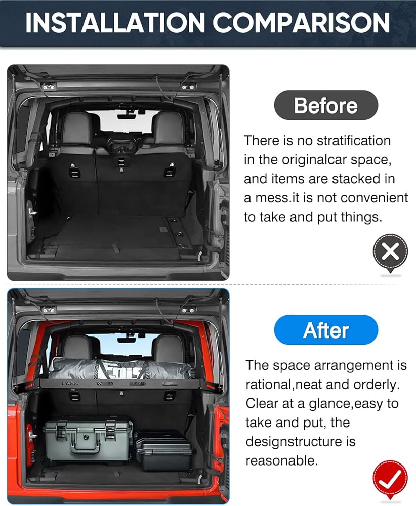 【مناسب تمامًا لسيارة Wrangler JL 】: رف البضائع الداخلي من Huidnnas متوافق مع 2018 2019 2020 2021 2022 2023 Jeep wrangler JL. ولا للجزء العلوي الناعم.