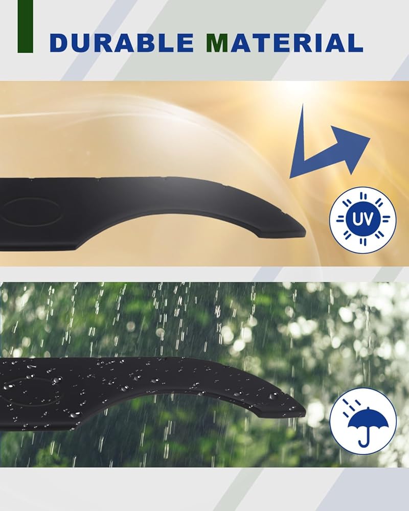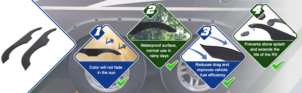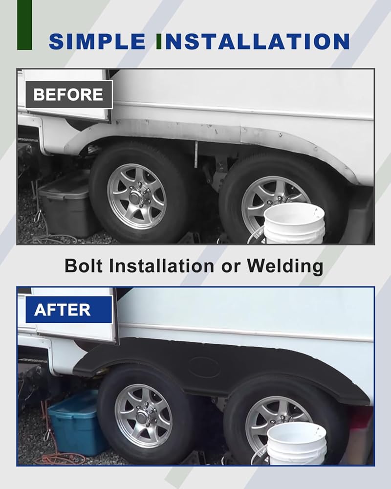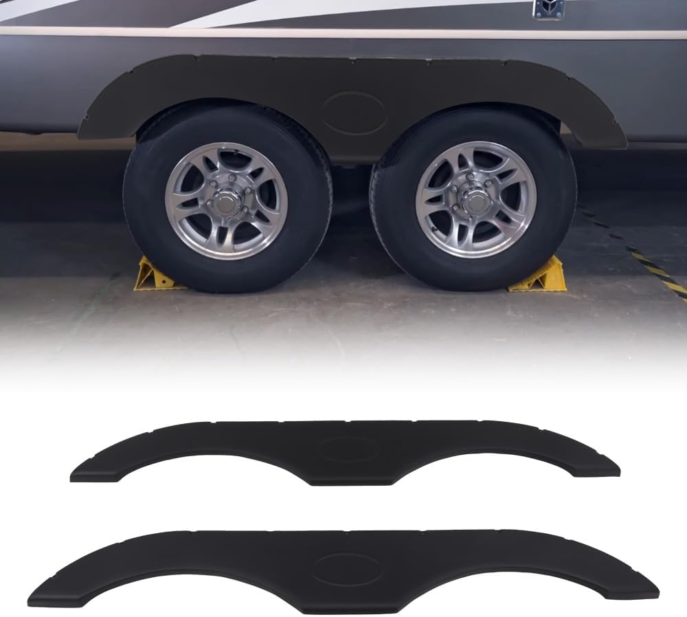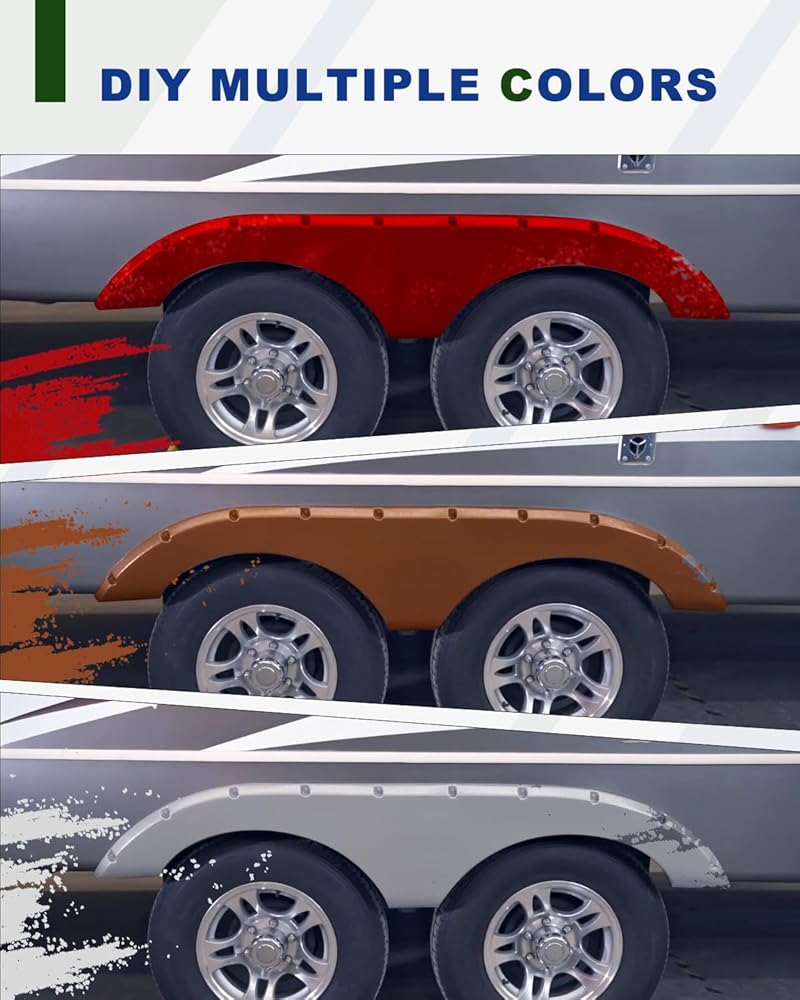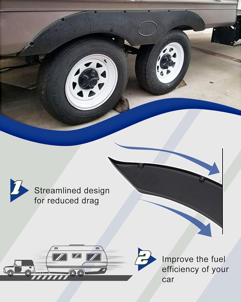 موقع التثبيت: مصدات المقطورة الترادفية تناسب معظم سيارات RVs والمعسكرات والمقطورات. يجب أن تحتوي المقطورة الخاصة بك على تصميم عجلة خلفية مزدوجة المحور من أجل تثبيت هذه التنانير الترادفية، لضمان ملاءمة جيدة، يرجى قياس منطقة التثبيت بأفضل ما يمكنك و ثم قارن الأبعاد في الصورة.
