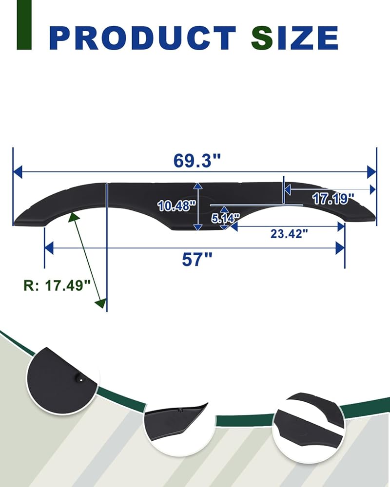 وظيفة المنتج: تم تصميم مصدات المقطورة لتحل محل تنانير الرفارف الممزقة وهي مثالية لاستبدال الرفارف عند تآكل الرفارف القديمة بسبب تأثيرات الحطام أو التعرض لأشعة الشمس.