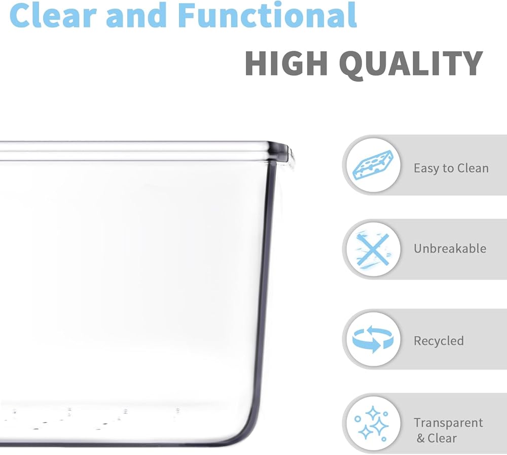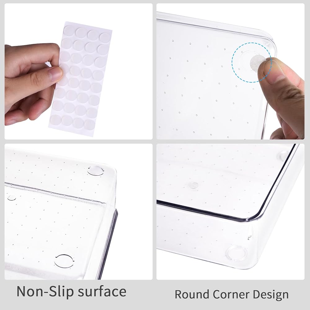 كل صينية شفافة، لذلك يمكنك رؤية ما بداخلها بسهولة. يمكنك فتح وإغلاق الدرج الخاص بك بثقة، بفضل وسادات السيليكون المانعة للانزلاق الموجودة في الجزء السفلي من السلة والتي تحافظ على الوحدات في مكانها. لن تنزلق في الدرج الخاص بك.