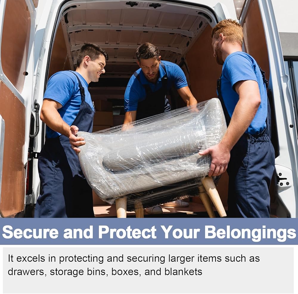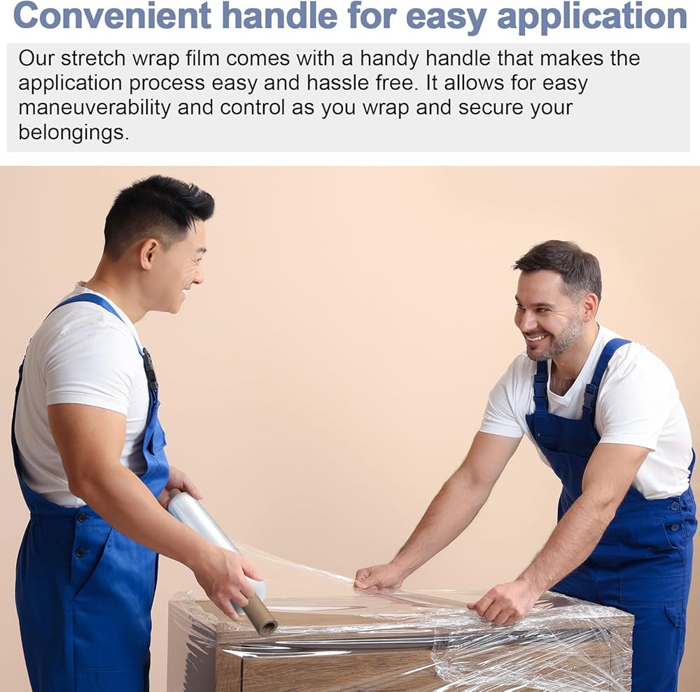 Our stretch wrap film comes with a handy handle that makes the application process easy and hassle free. It allows for easy maneuverability and control as you wrap and secure your belongings.