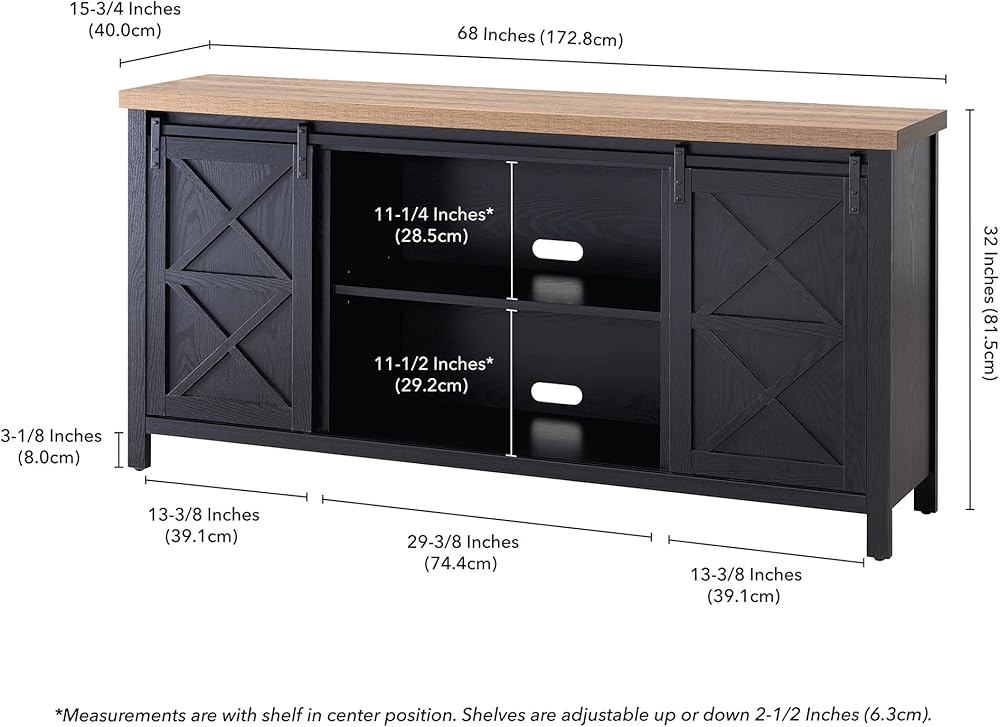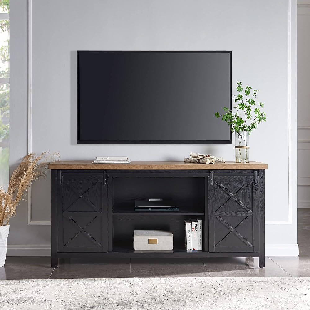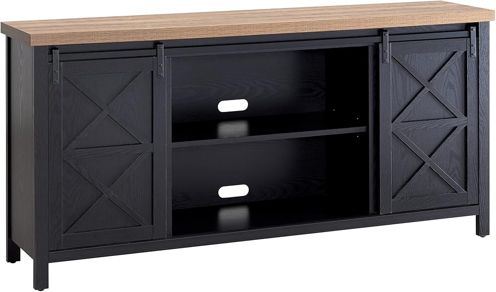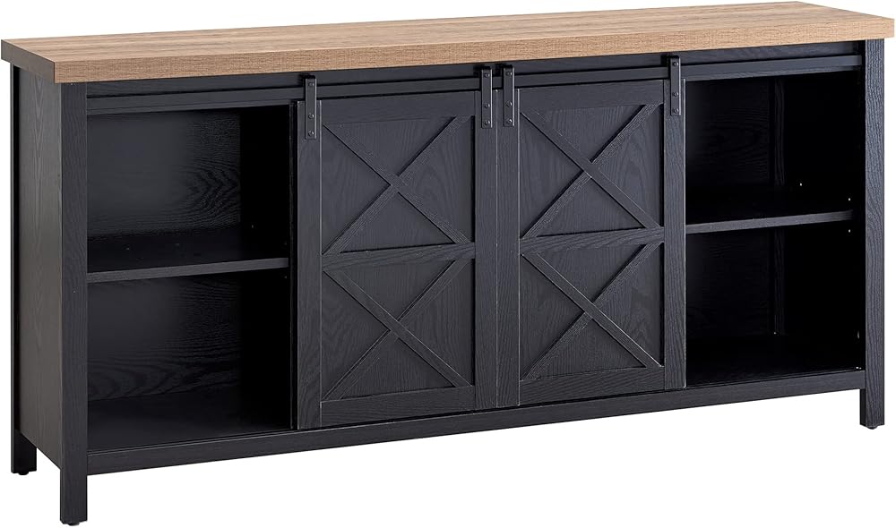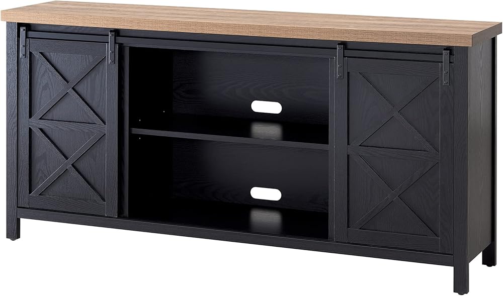 Combine functionality and on-trend design with this sturdy TV stand. Its rich wood tone creates a warm neutral palette that will blend seamlessly into any color scheme, while its functional sliding barn doors add a touch of modern farmhouse whimsy. A must-have for living areas and entertainment spaces, this TV stand sets the stage for the big game, a movie marathon, or that season finale everyone's been talking about.