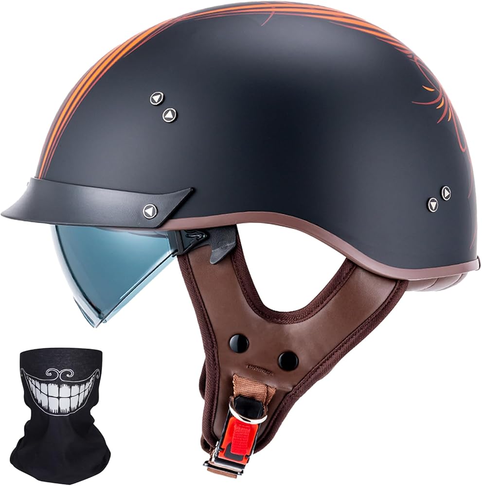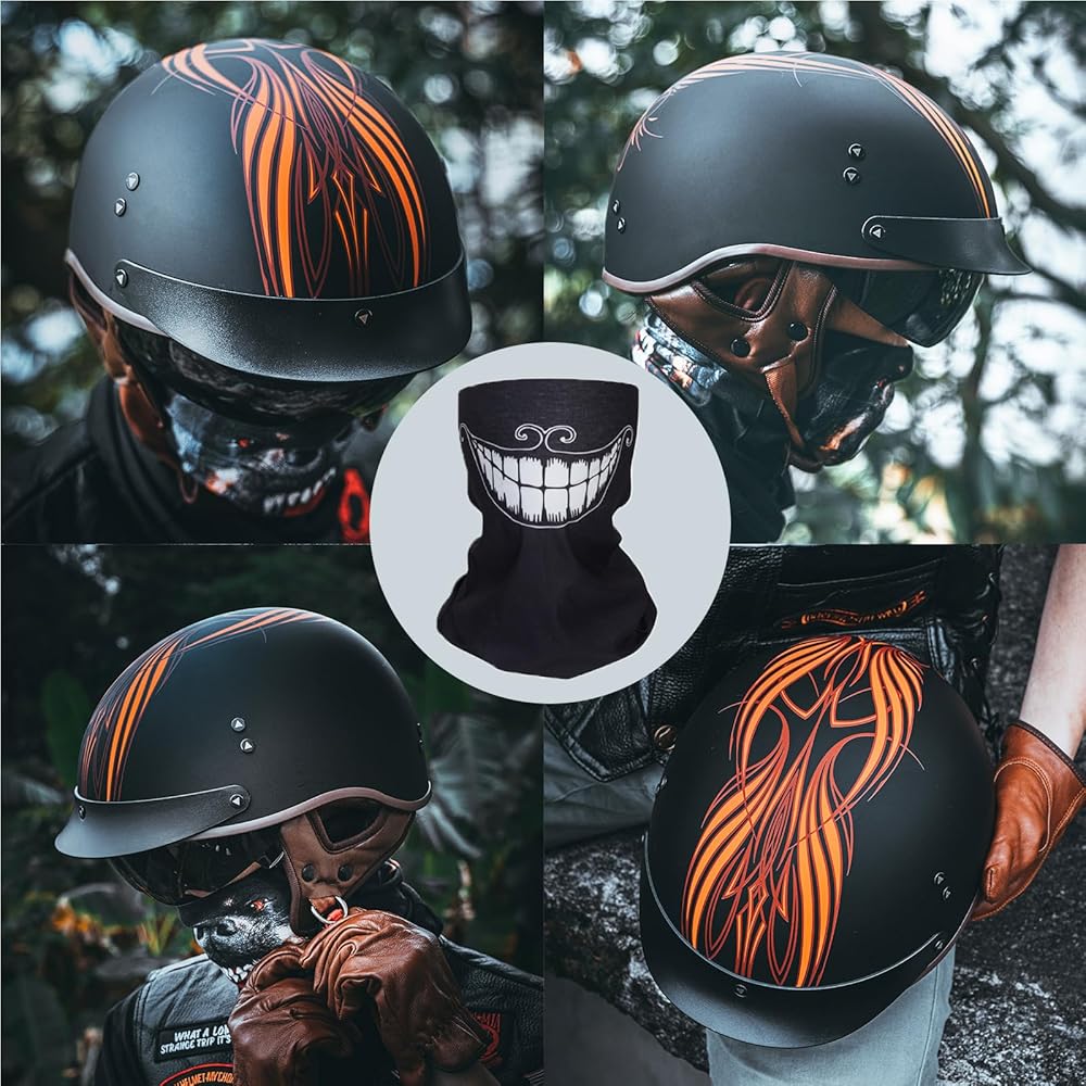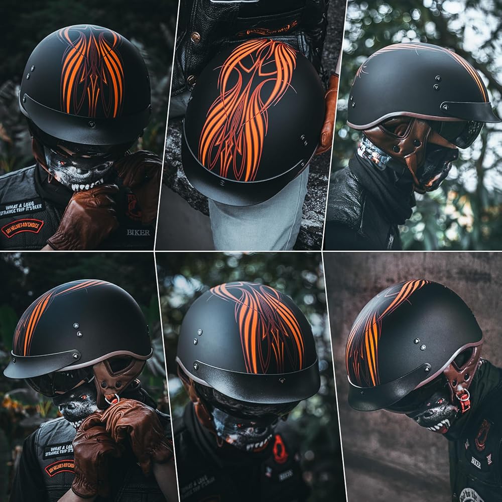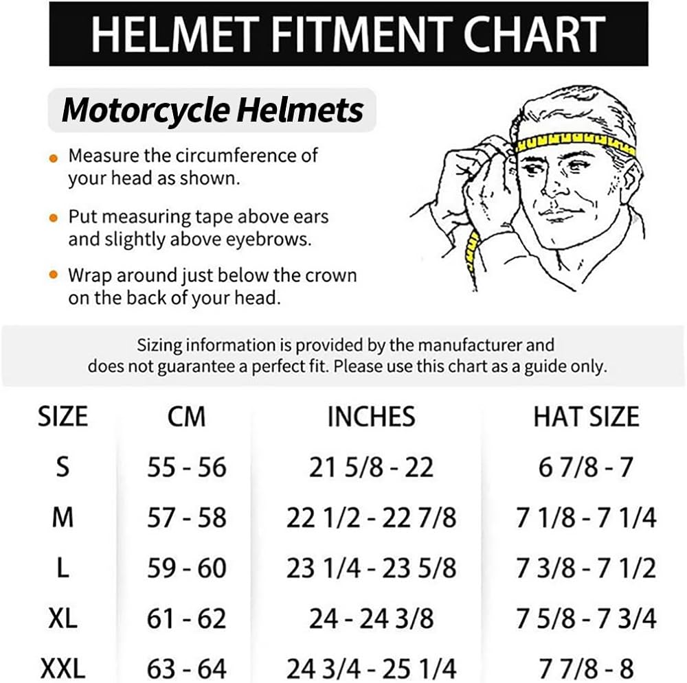 【خوذة نصف مقاس للبالغين】تتضمن خوذات نصف الدراجات النارية لدينا 3 مقاسات للبالغين M/ L/ XL. يرجى قياس محيط رأسك واختيار المقاس المناسب وفقًا لجدول المقاسات.