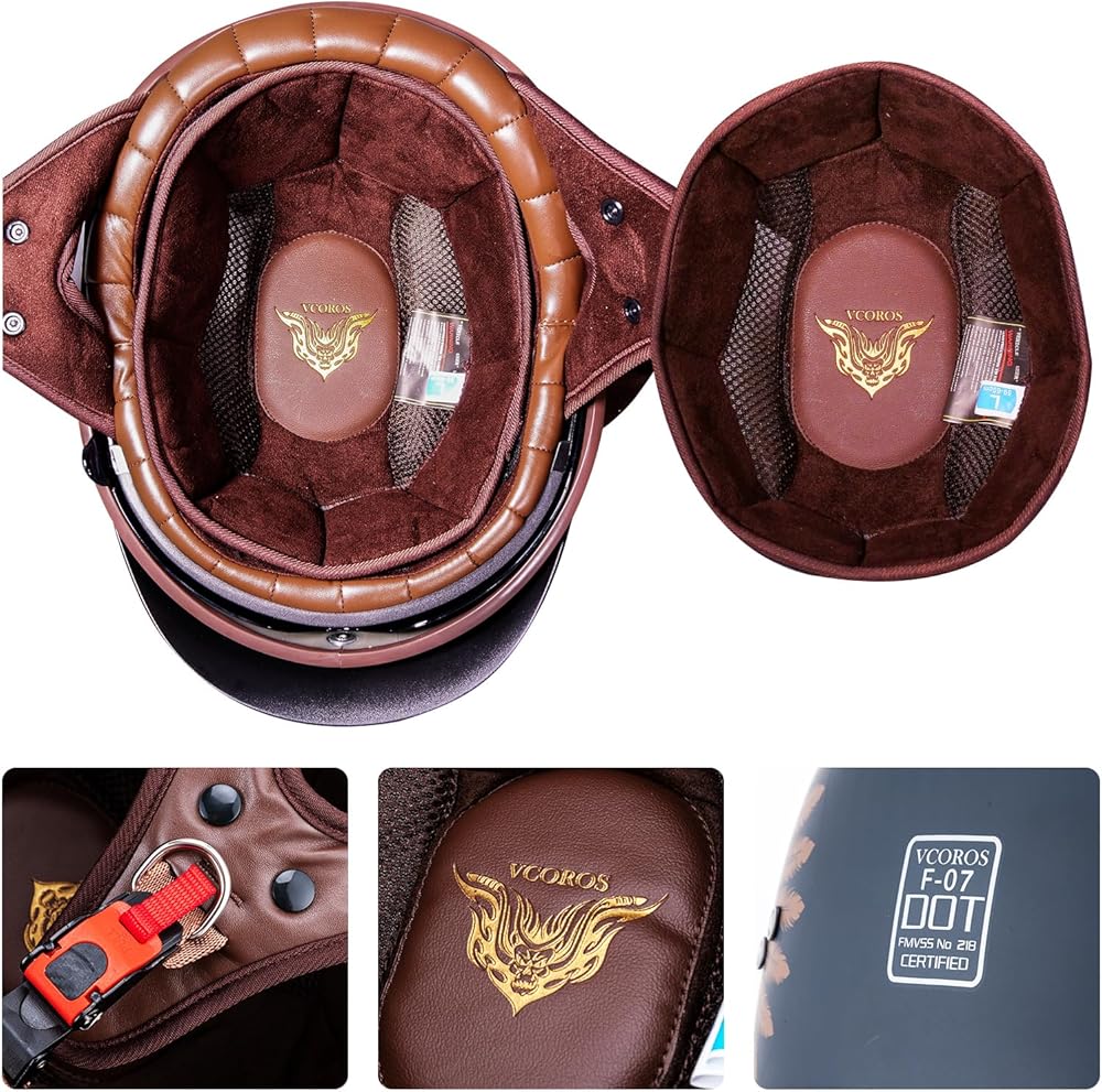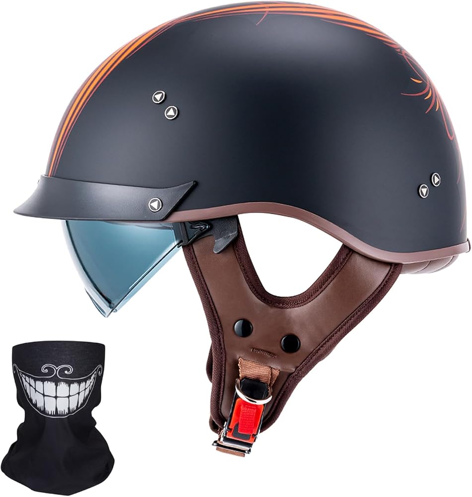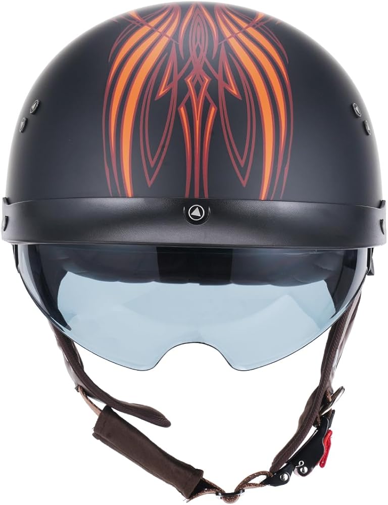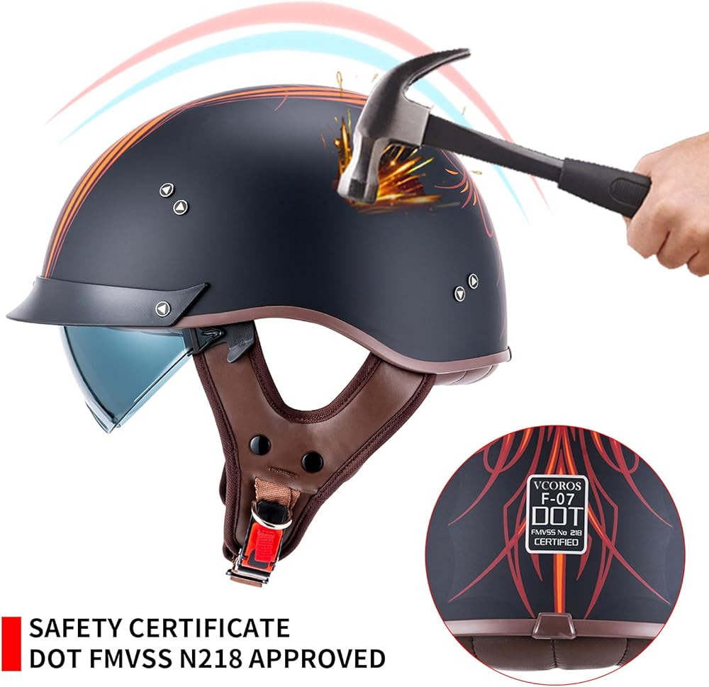 【خوذة نصف مقاس للبالغين】تتضمن خوذات نصف الدراجات النارية لدينا 3 مقاسات للبالغين M/ L/ XL. يرجى قياس محيط رأسك واختيار المقاس المناسب وفقًا لجدول المقاسات.