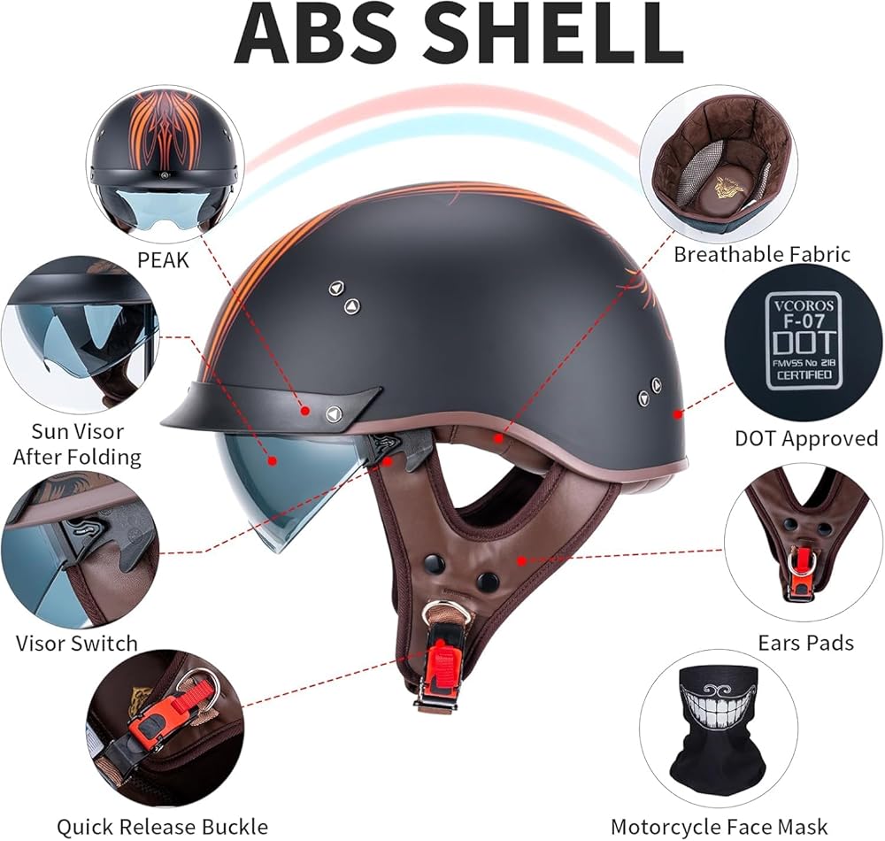 【نبذة عن اللون الأسود غير اللامع والأبيض اللامع】لقد قمنا بحل مشكلة المخزون مع حافة الخوذات النصفية باللون الأسود غير اللامع والأبيض اللامع، يرجى الشراء بثقة. إذا تلقيت أي مشاكل في المنتج، فلا تتردد في الاتصال بنا عبر الرسائل، ونحن ندعم الإرجاع أو الاستبدال.