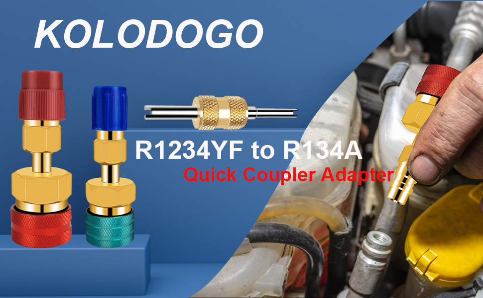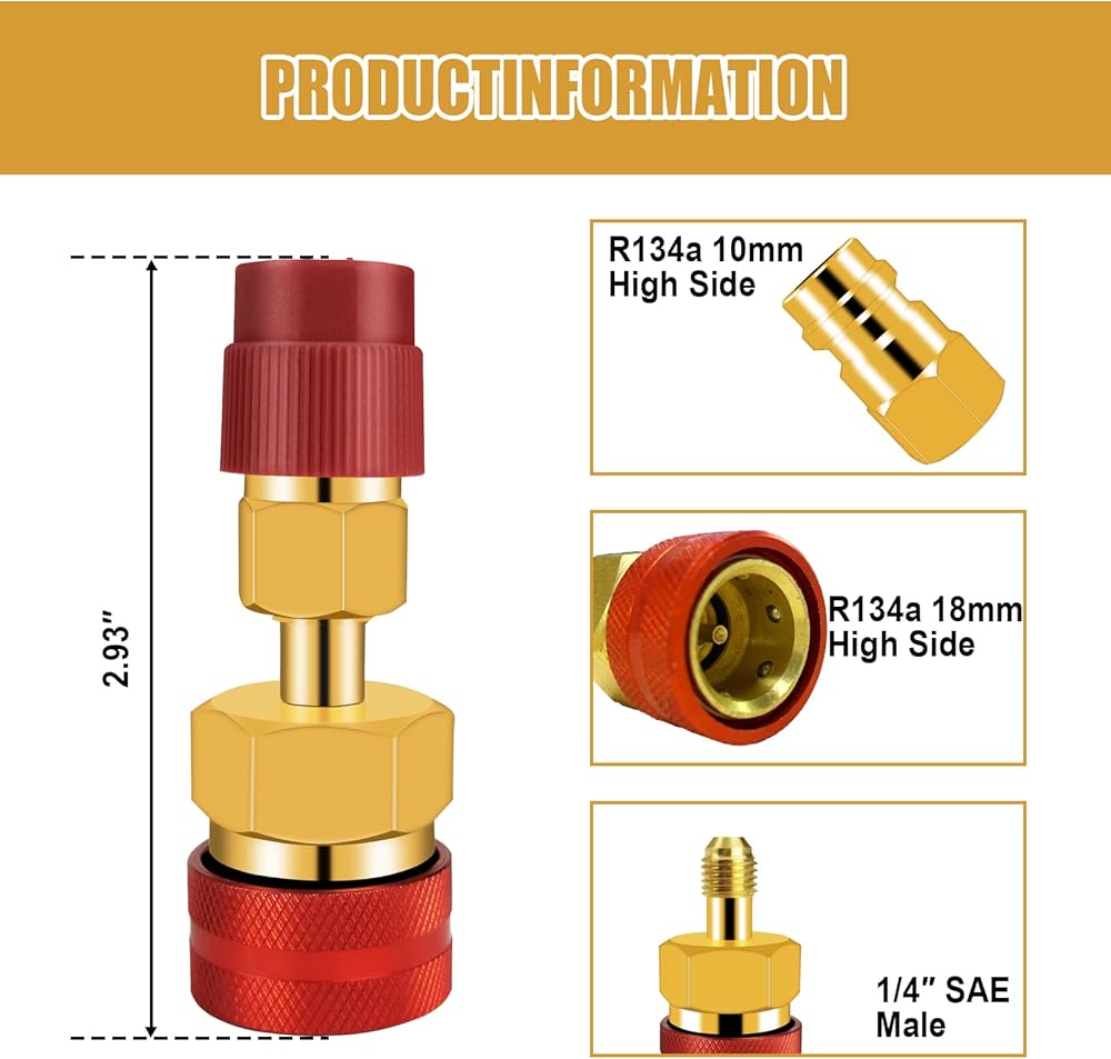 توافق واسع: محول R1234YF أحمر R12 إلى R134a موصل، 1/4 بوصة SAE أنثى × ضغط عالي 16 مم R134A وصلة سريعة. محول R1234YF أزرق موصل R12 إلى R134a، 1/4 بوصة SAE أنثى × ضغط منخفض 13 مم R134A وصلة سريعة.