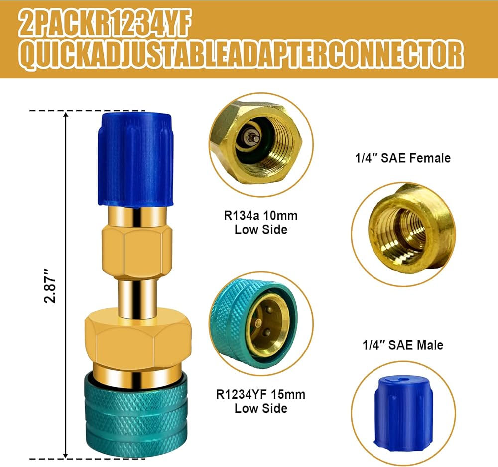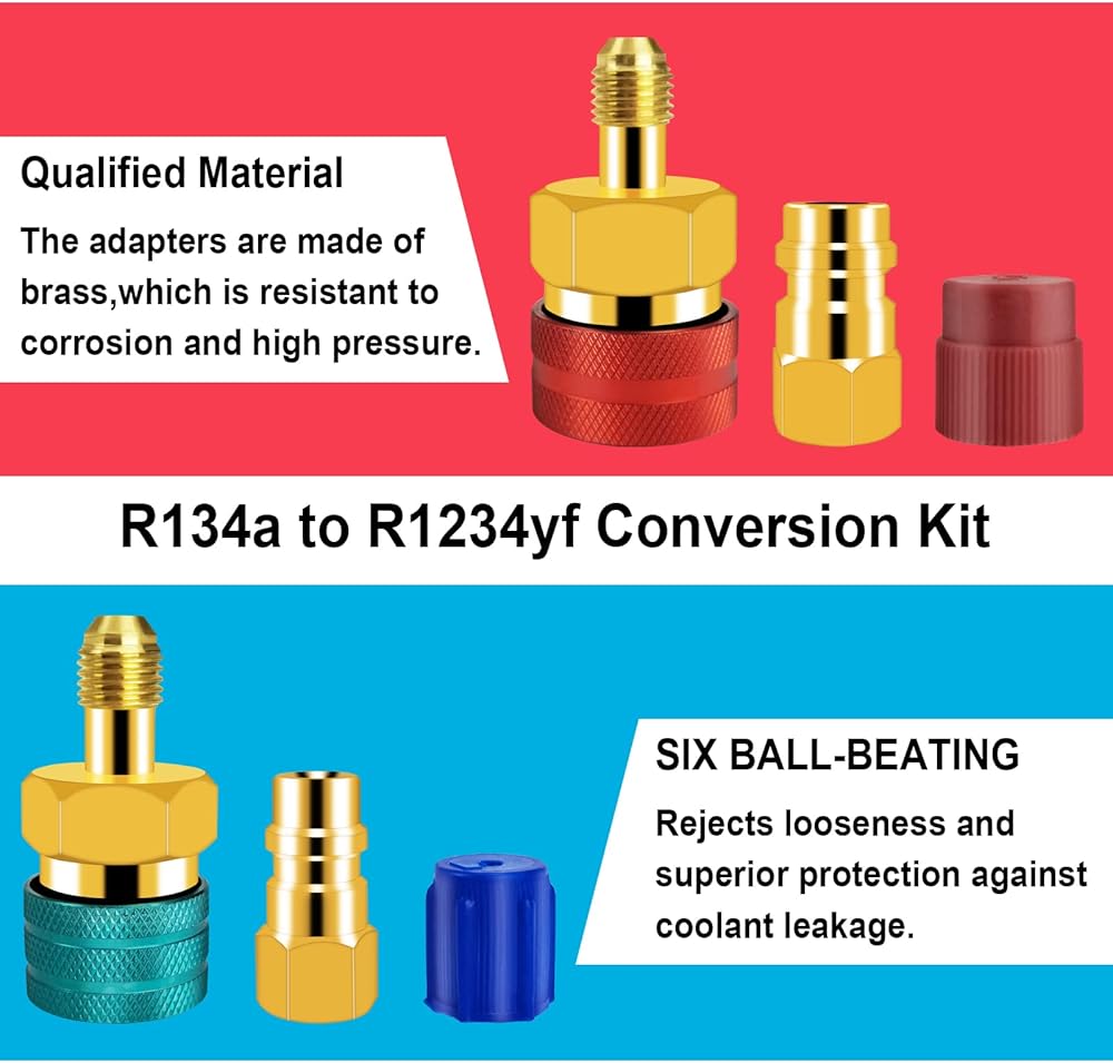 【مادة عالية الجودة】محول R1234yf مصنوع من النحاس الصلب الممتاز بجودة عالية وبنية قوية. يتحمل درجة الحرارة العالية ودرجة الحرارة المنخفضة. أداة يجب اقتناؤها لمساعدتك على إنجاز المهمة.