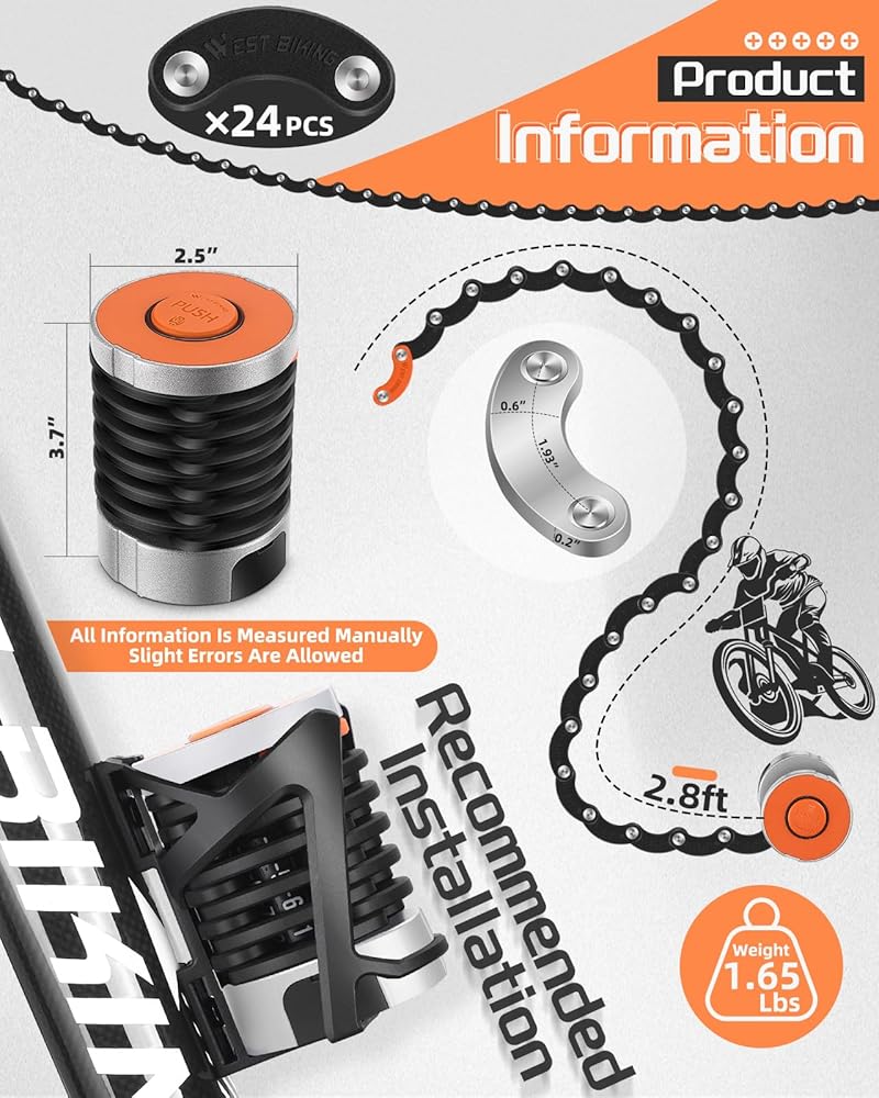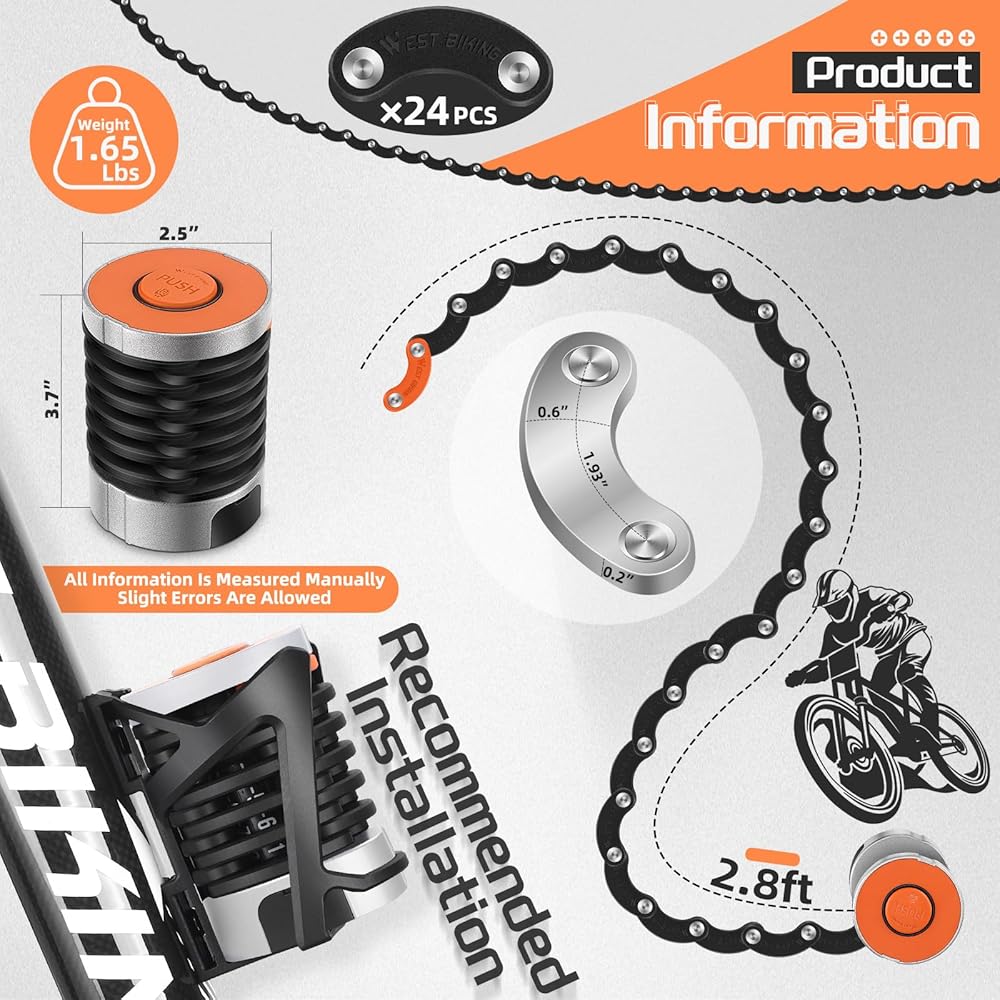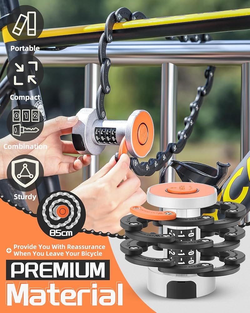 【ضمان ما بعد البيع】نحن نقدم 3 أشهر بدون سبب لإرجاع أو استبدال مجموعة قفل الدراجة القابلة للطي، ليس لديك أي خطر في تجربتها. إذا كانت لديك أي أسئلة، فيرجى الاتصال بنا في الوقت المناسب