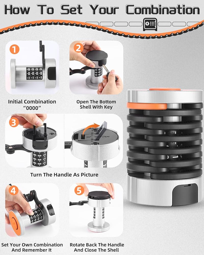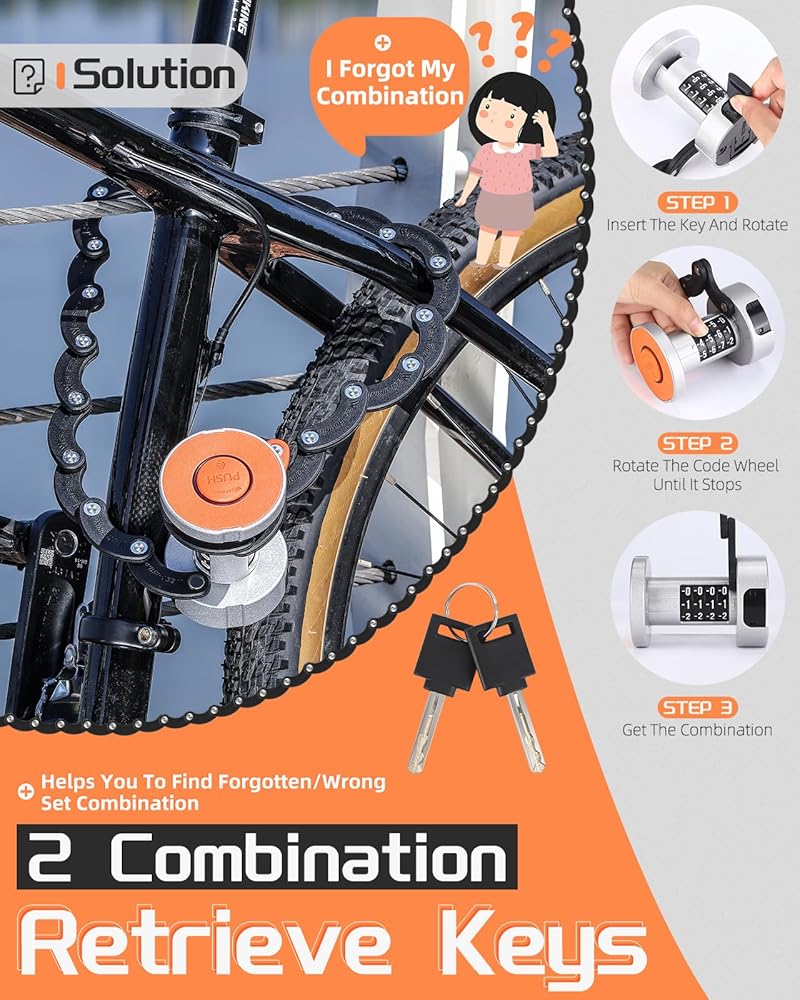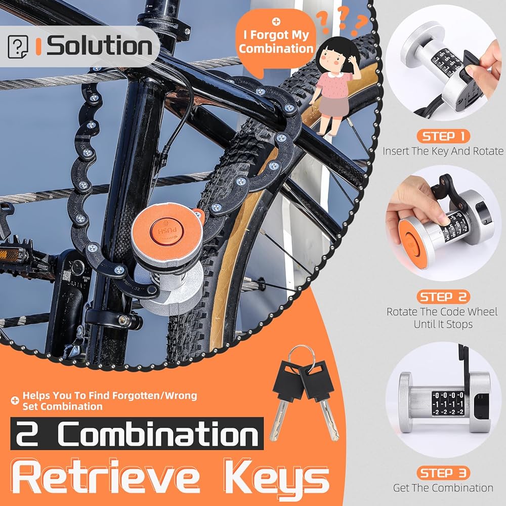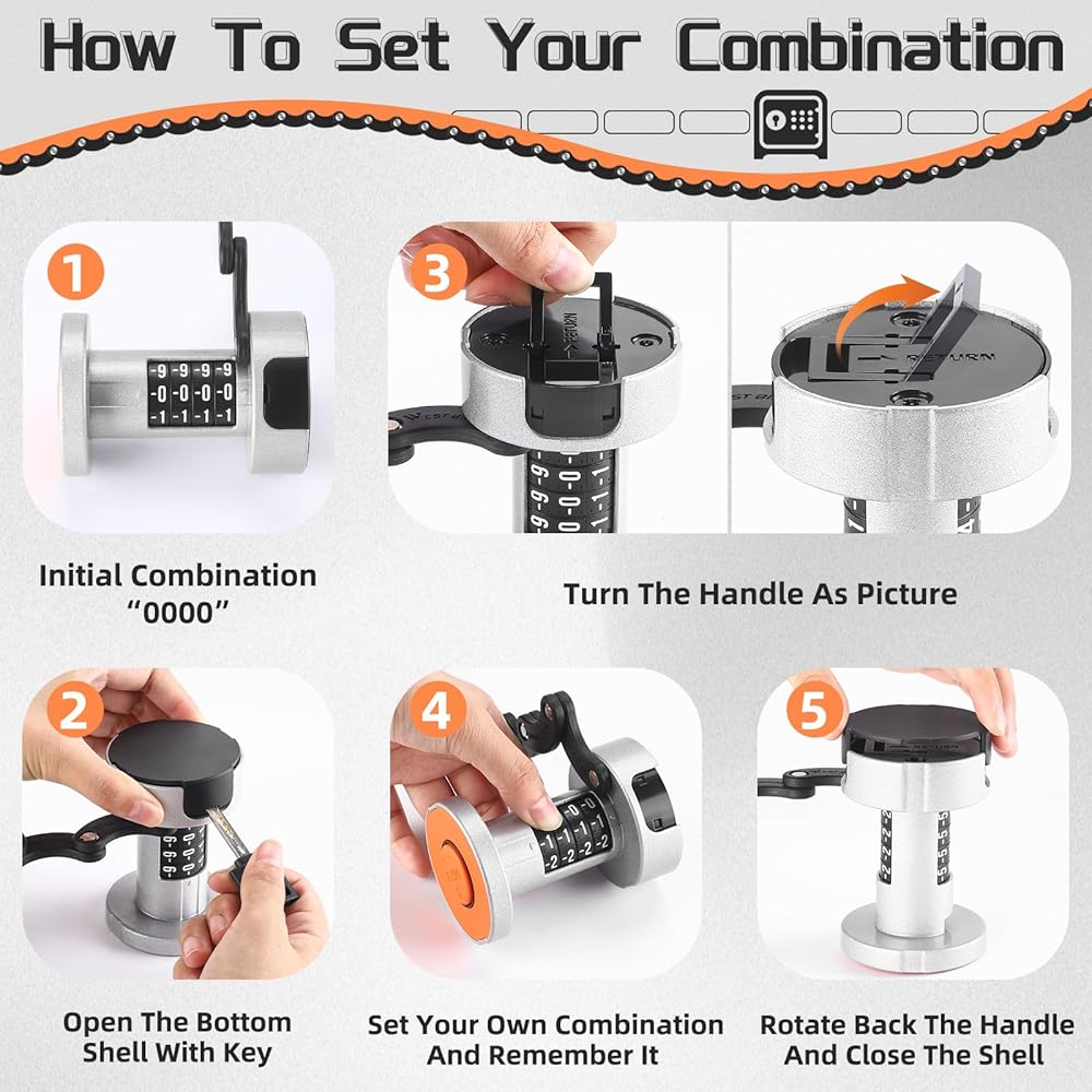 【إعادة ضبط المجموعة واسترجاعها】يأتي قفل الدراجة عالي التحمل المضاد للسرقة من تشيمونا مع مجموعة مكونة من 4 أرقام، لم يعد هناك ما يدعو للقلق بشأن فقدان أو نسيان مفاتيحك عندما تريد الركوب. مع نظام استرجاع كلمة المرور الحاصل على براءة اختراع، يمكنك استرداد مجموعتك المنسية باستخدام المفتاحين المرفقين