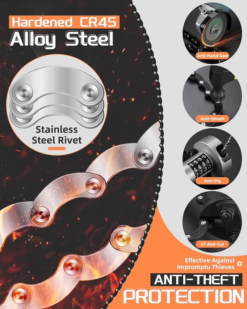 【مقاوم للسرقة من الفولاذ المعالج بالحرارة】بسبب اللوحة الفولاذية المروية والمسامير المصنوعة من الفولاذ المقاوم للصدأ، يمكن أن يوفر قفل الدراجة أداءً ممتازًا ضد السرقة بنفس الوزن. يمكن لقاطع البراغي المضاد لـ 24 بوصة والمقاوم للمنشار أن يمنع بشكل فعال نسبة كبيرة من اللصوص المحتملين. جميع لوحات قفل السكوتر مغطاة بأغطية ABS، والتي من شأنها حماية لوحة دراجتك من الخدش بواسطة القفل