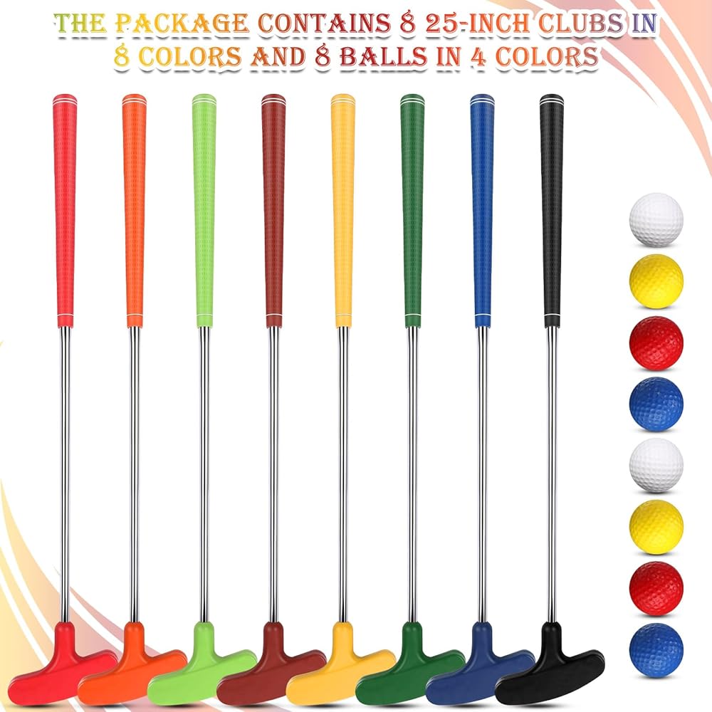 وفيرة للاختيار: سوف تحصل على 8 عبوات مضارب جولف بـ 8 ألوان مختلفة مع 8 قطع من كرات الجولف، وكميات كافية لتلبية احتياجات التدريب واللعب، هناك 8 مضارب جولف ملونة مختلفة للاختيار من بينها، برتقالي، أزرق، أصفر، أحمر أسود، أخضر، بني، أخضر فاتح، يمكن للعائلة والأصدقاء اختيار اللون وفقًا لتفضيلاتهم الخاصة، والذين سيقضون وقتًا ممتعًا.