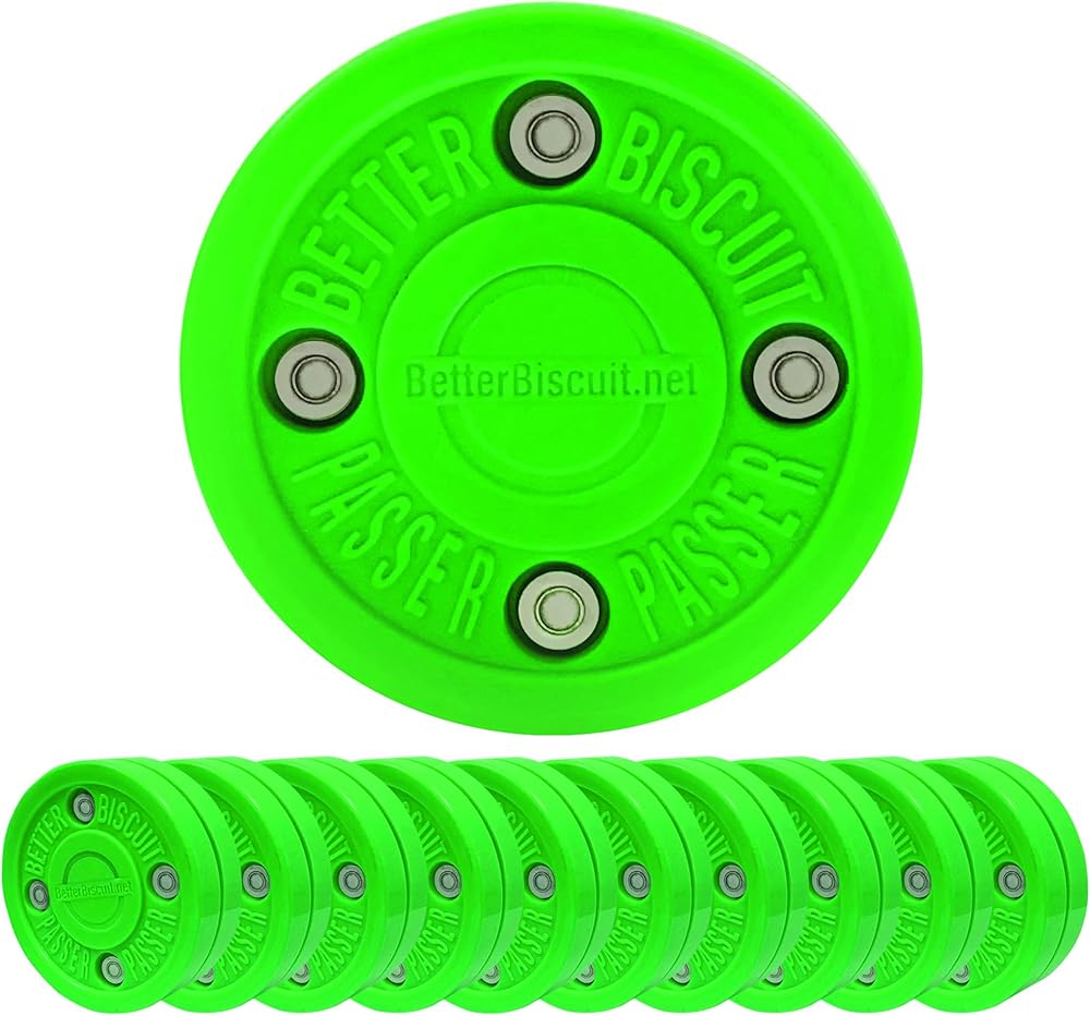 Tired of always be searching for your favorite off-ice puck to practice your skills? Buy this Better Biscuit Passer-10 pack and leave one everywhere. One in your hockey bag, one in the basement, and one in the garage you get the idea! It's time to take control of your future. Now is the best time to own your craft with the Better Biscuit Passer. Our engineers have been working overtime to come up with a new and improved off-ice puck to allow you to train on any surfaces! You no longer need an ice surfaces or balls to improve your stickhandling and passing out of the rink. You can practice anywhere, anytime you want with the stronger and more flexible Better Biscuit passer. Time to reach your full potential and amaze the gallery with your new set of hands!