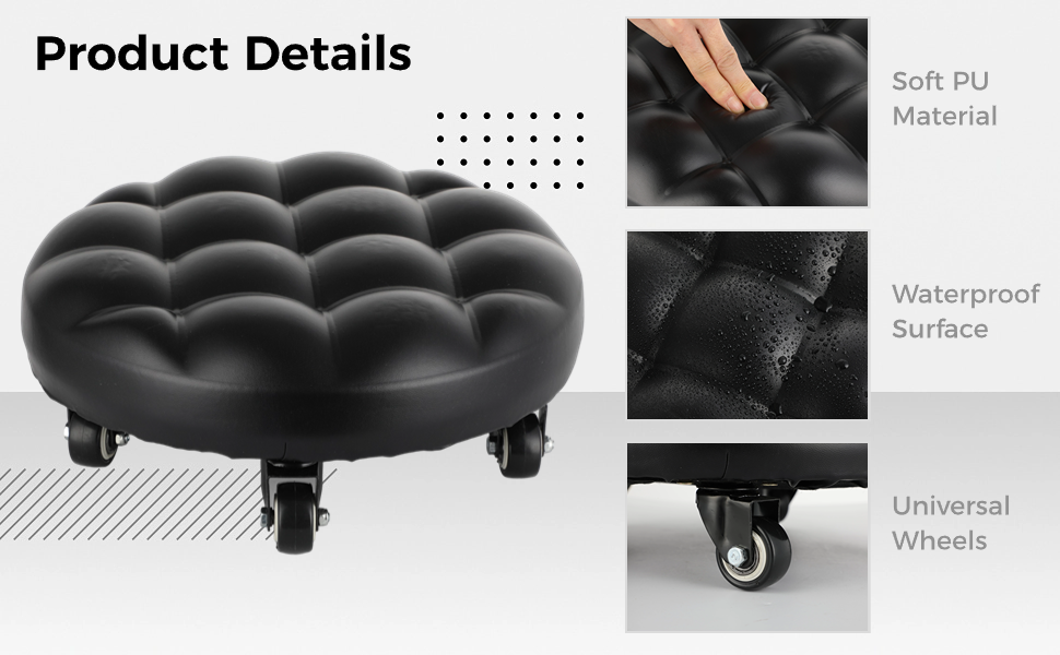 【مادة بولي يوريثان ناعمة ومقاومة للماء】 يعتمد مقعد العجلة المنخفض الخاص بنا على مادة البولي يوريثان الناعمة التي تضمن تجربة جلوس مريحة. تستعيد المادة المرنة شكلها بسرعة بعد الوقوف، مما يضمن متانة طويلة الأمد. بالإضافة إلى ذلك، فإن البولي يوريثان مقاوم للماء ومقاوم للخدش، مما يجعل من السهل تنظيفه بمسحة لطيفة باستخدام قطعة قماش مبللة