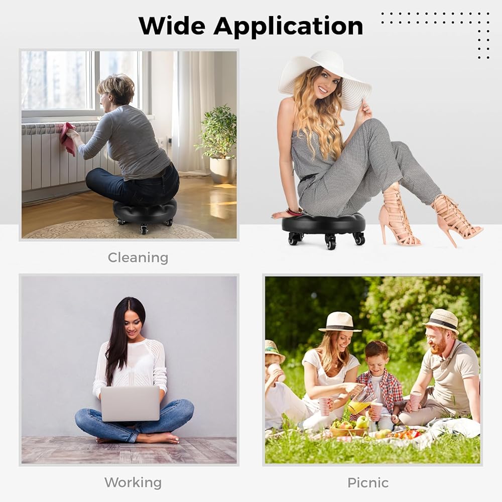 【تطبيقات متعددة الاستخدامات】يمكن للبالغين والصغار استخدام هذا المقعد المتدحرج منخفض الارتفاع كمقعد يومي. إن حركتها تجعلها مناسبة لمهام التنظيف المنزلية وجلسات اليوغا وتمارين الركبة والمزيد. استمتع بالراحة والراحة التي يوفرها كرسي المقعد الدوار الخاص بنا في روتينك اليومي وتمارينك ومهامك المنزلية