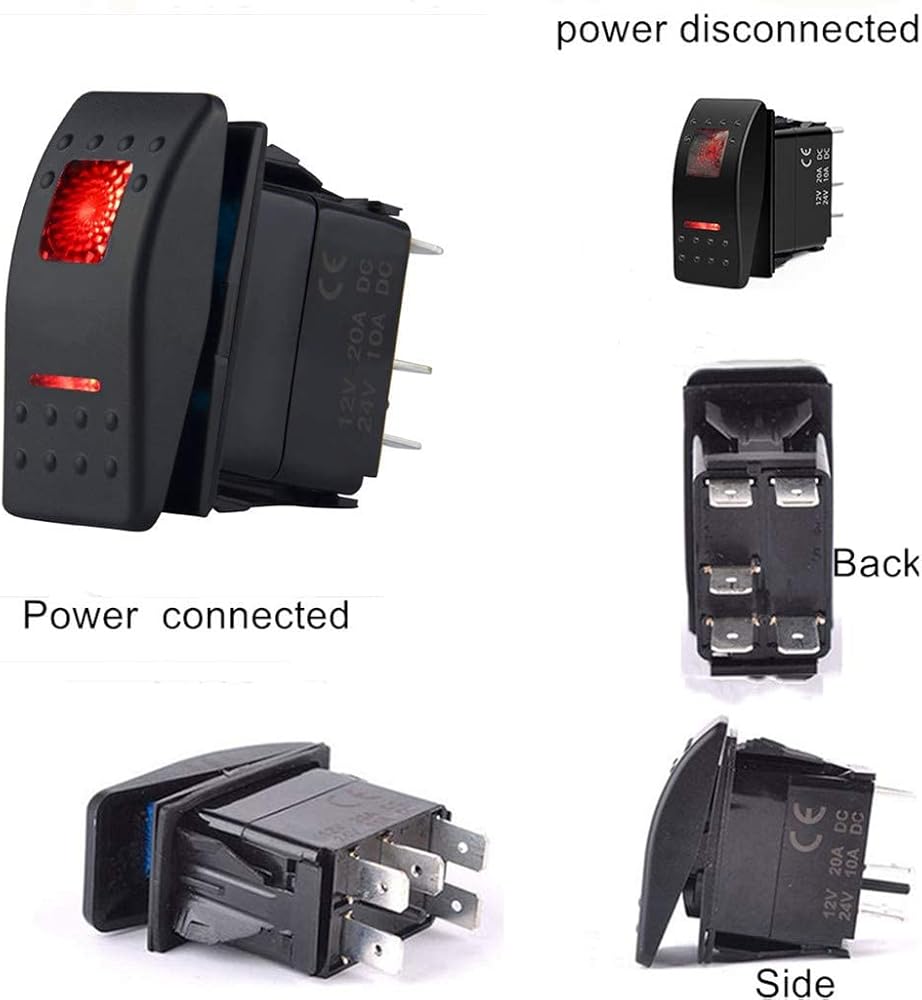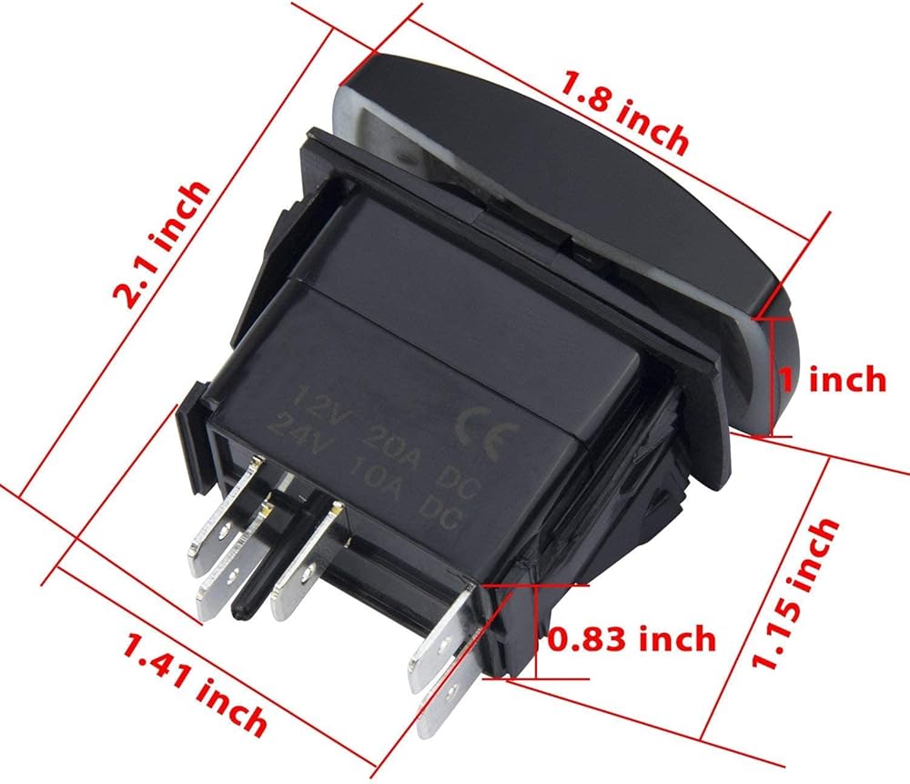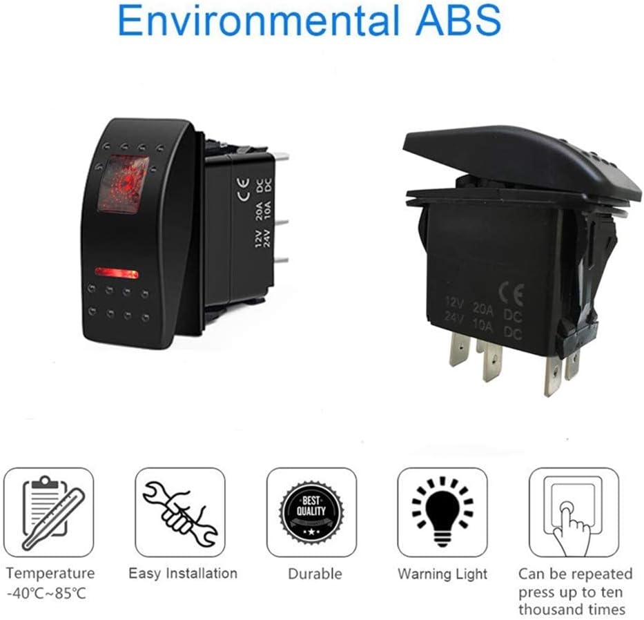 • 【مفتاح 5 دبابيس】مفتاح الروك القياسي ذو 5 دبابيس تم تصنيفه عند 12VDC/20 أمبير أو 24VDC/10 أمبير ممتاز للتحكم في أجهزتك الجديدة مثل شريط الإضاءة LED ومصابيح الضباب والمصابيح الأمامية والونش والأضواء الإضافية ومروحة التبريد أو المصابيح.