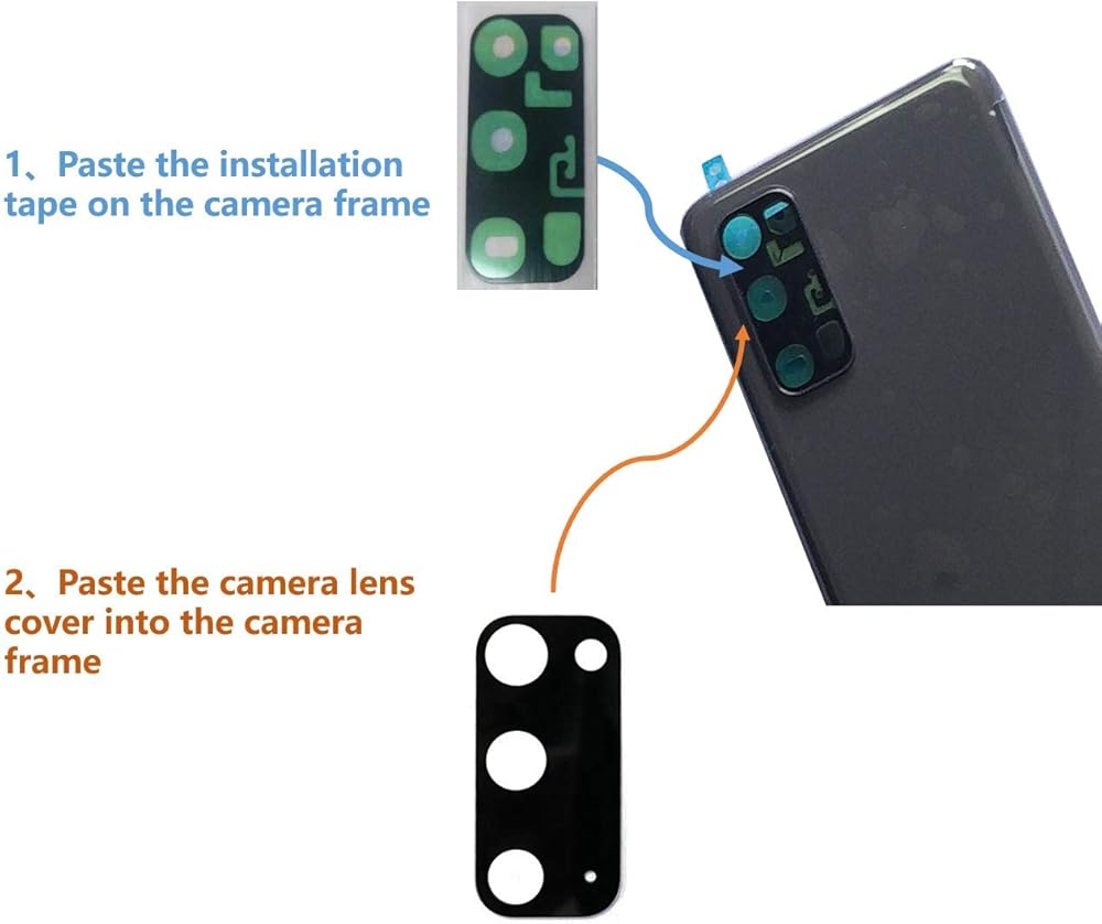 قطعتان من غطاء العدسة الزجاجية للكاميرا الخلفية لهاتف Galaxy S20 لهاتف Samsung Galaxy S20 (جميع شركات النقل) مع أدوات إصلاح (S20) (أسود)