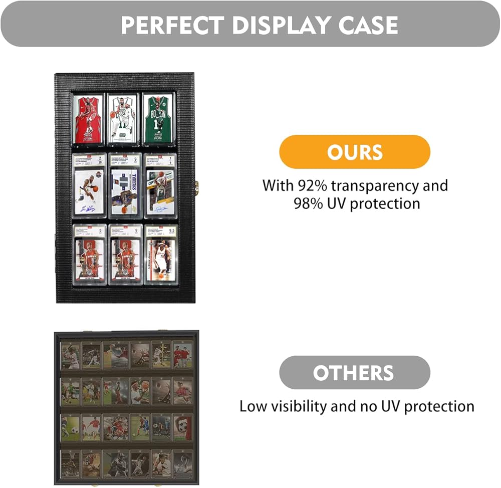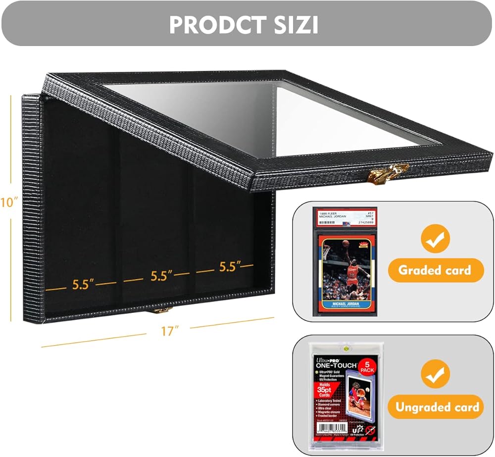 【تحمل ما يصل إلى 8 بطاقات PSA】- الحجم الخارجي للإطار هو 35.56 سم × 25.4 سم × 5.08 سم. يرجى قياس البطاقات للتأكد من أن ارتفاع البطاقات لا يزيد عن 5.5 بوصة. يمكن لحافظة عرض البطاقات الرياضية هذه عرض كل من البطاقات المصنفة وغير المصنفة، حتى 8 بطاقات PSA (البطاقات غير متضمنة).