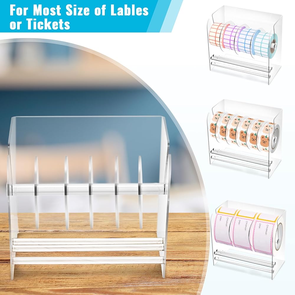 【حافظ على الملصقات منظمة】تم تصميم حامل لفافة الملصقات الخاص بنا بقاعدة أعلى تسمح لأسلاك الطابعة بالمرور عبر حامل الملصق، وتجنب التشابك والفوضى. تساعدك على الحفاظ على الورقة مبطنة بشكل جيد مع الطابعة، وتثبيت الملصقات والملصقات في مكانها دون الانزلاق، مما يسمح لك بوضع لفة ورق الملصق الحراري بشكل أسهل وأسرع. في متجر الأدوات، يمكنك أن ترى أنه غالبًا ما يستخدم كموزع للشريط الحراري وموزع لشريط الأكريليك.