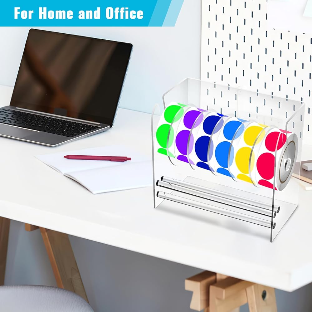 【حامل ملصقات شفاف عالي الجودة】موزع الملصقات هذا مصنوع من مادة أكريليك عالية الجودة، قوي ومتين بما فيه الكفاية، وليس من السهل كسره وتشويهه ويمكن استخدامه لفترة طويلة. يساعدك حامل لفافة الملصقات الشفافة على رؤية الملصق أو الملصق بالداخل بوضوح، ويساعدك على ضبط الملصقات وتنظيمها بسرعة. فقط عليك وضع موزع لفافة الملصقات من خلال عمود الأكريليك ووضع المنشور في الأخدود، ثم يمكنك وضع الملصق بالداخل مريحة للتجميع والاستخدام.