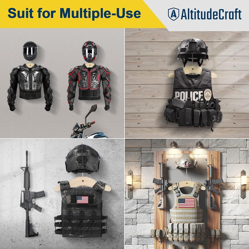 أصبح التثبيت بسيطًا، والاستمتاع أصبح خالدًا: وقتك لا يقدر بثمن، ونحن نحترم ذلك. تم تصميم حامل السترة التكتيكية AltitudeCraft على الحائط لسهولة التركيب، مع أدلة بديهية ومكونات جاهزة للاستخدام. حرر نفسك من مشاكل التثبيت وقم بتحويل مساحتك بسرعة إلى عرض لشغفك؛ توفر AltitudeCraft الدعم الفني مدى الحياة، إذا كانت لديك أي أسئلة حول مشكلتنا، فلا تتردد في الاتصال بنا