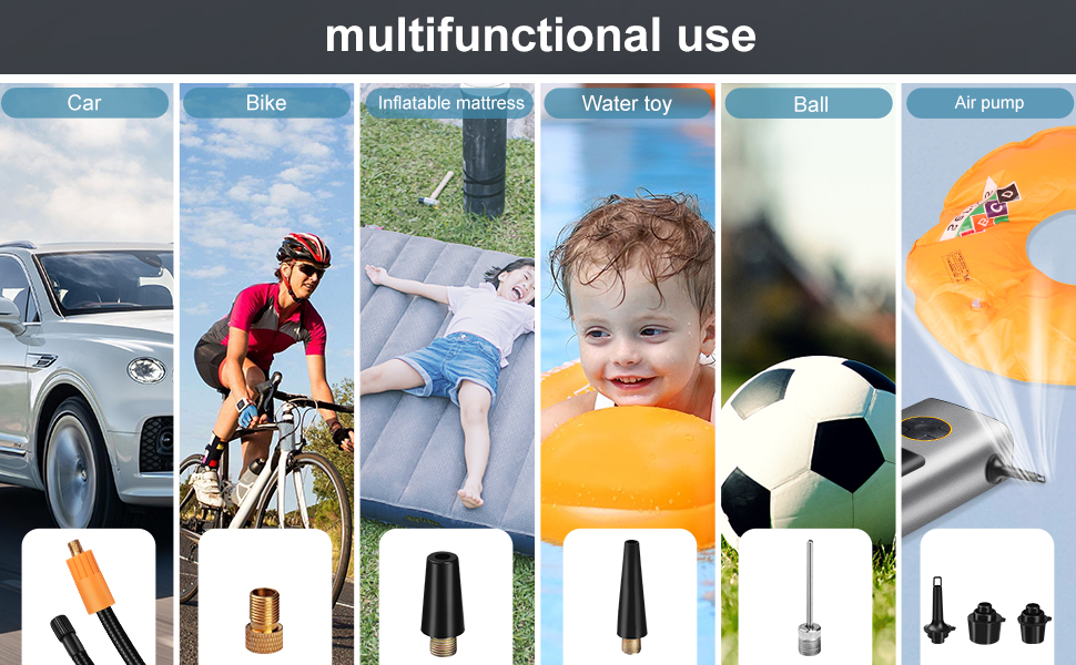 • [ضمان لمدة عام وقائمة المنتجات] يأتي ضاغط الهواء المحمول الخاص بنا لإطارات السيارة كاملاً مع كابل شحن للجسم، وفوهة هواء، وخرطوم هواء، ودليل المنتج، وإبرة كروية، وفوهة هواء طويلة، وفوهة هواء قصيرة، وإبرة دراجة. بالإضافة إلى ذلك، نقدم ضمانًا مجانيًا لمدة عام واحد، ويمكنك الاتصال بنا في أي وقت لطرح أسئلتك أو مخاوفك.